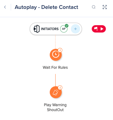 3. Next, we needed this to pop-up after Delete had been clicked. You can put the autoplay logic in the ShoutOut itself. But we got better results by autoplaying a flow that just waits a beat and then plays the ShoutOut.