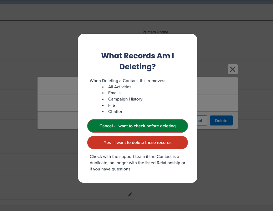 When you go to delete a contact, you now get a WalkMe overlay: