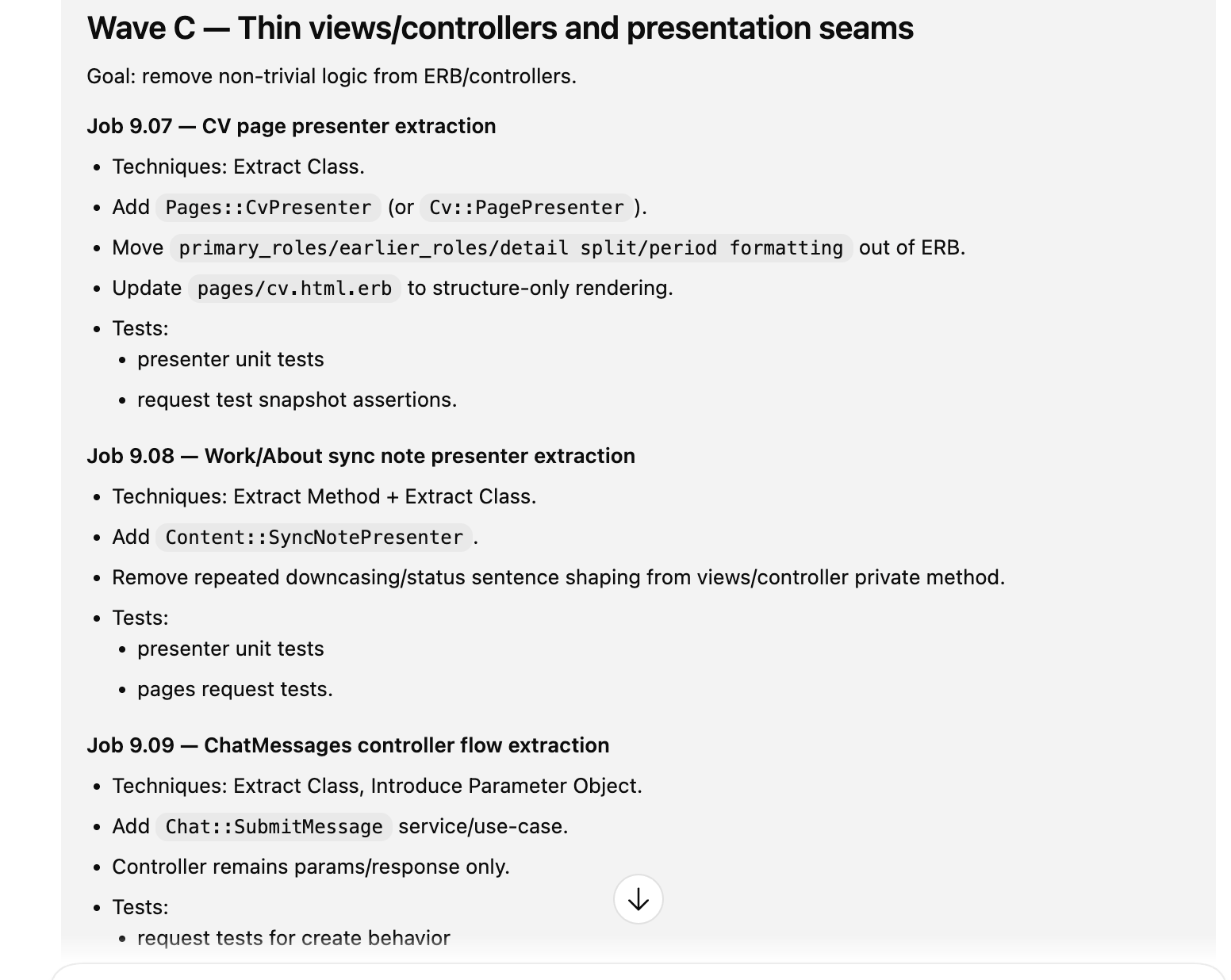 Codex produced a detailed refactor plan for the entire codebase — but crucially, broken into independent slices.