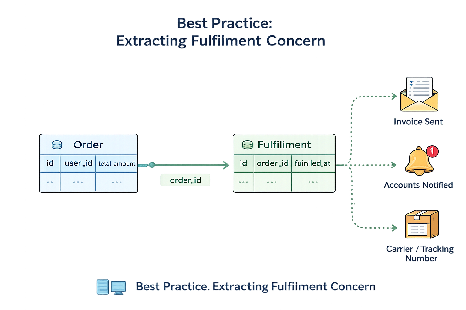 When fulfilment state lives inside the Order model, it’s difficult to inspect, edit, or replay fulfilment behaviour without dragging the entire “order machinery” along with it.