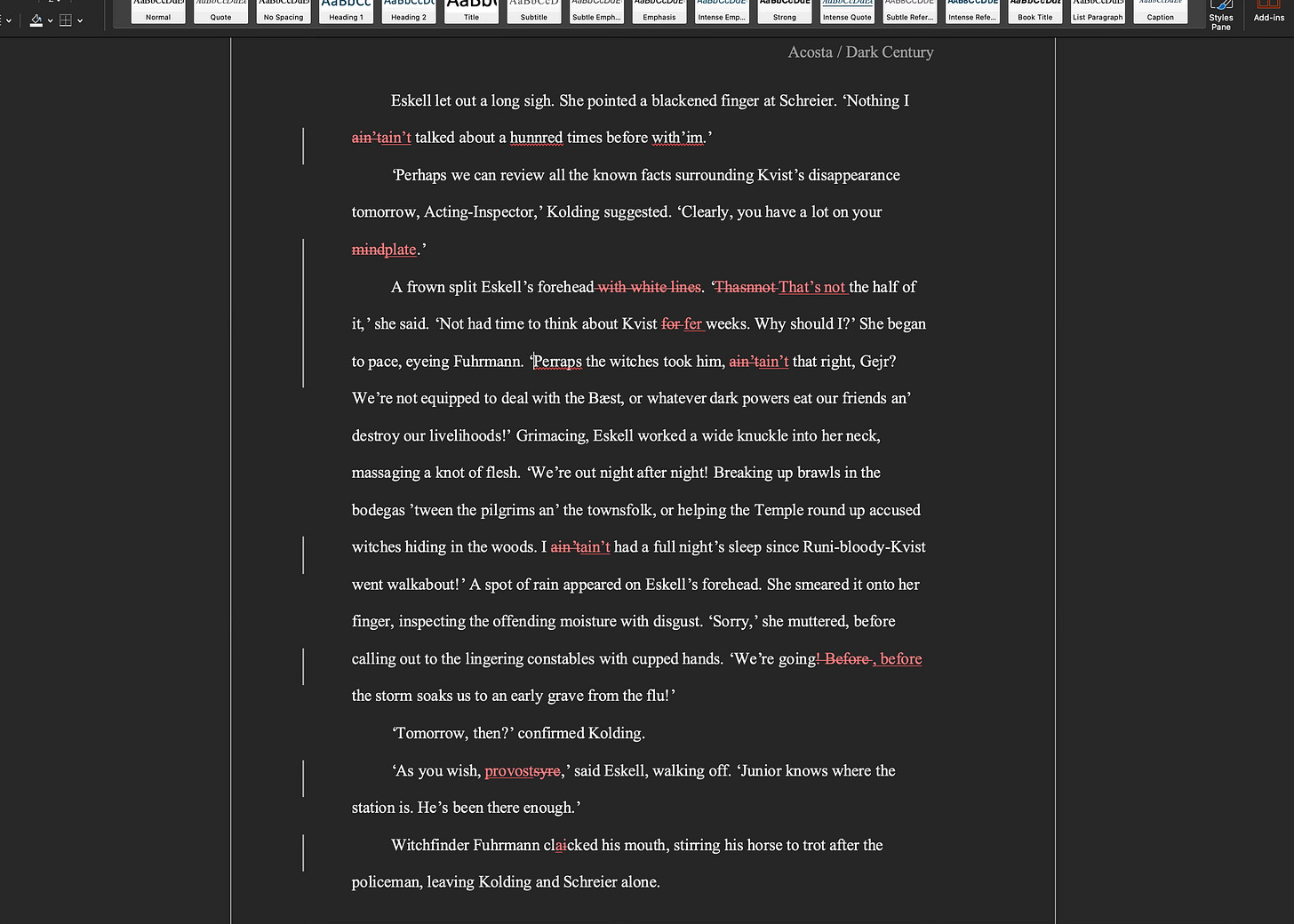 It’s a good thing I turned on Tracked Changes in Microsoft Word – it’s amazing just how many edits litter the manuscript.
