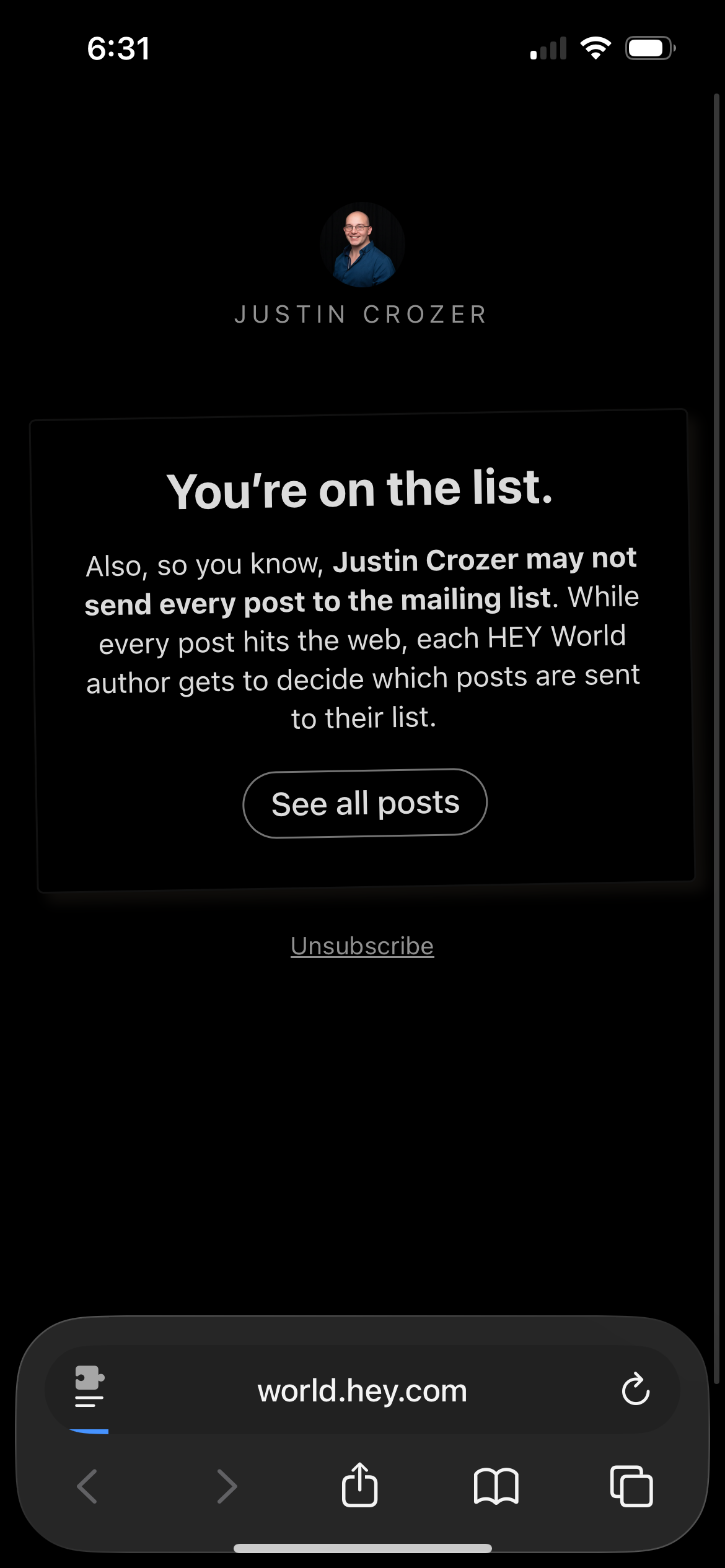 Yes I have to pay $99 USD p/yr but sometimes something simple even with limitations is worth it. What do you think the best blogging platform is and why? If you’re a blogger I’d also like to know what you use and why. Here’s a few images for what it looks like when you subscribe with your email address and what you get in your inbox.