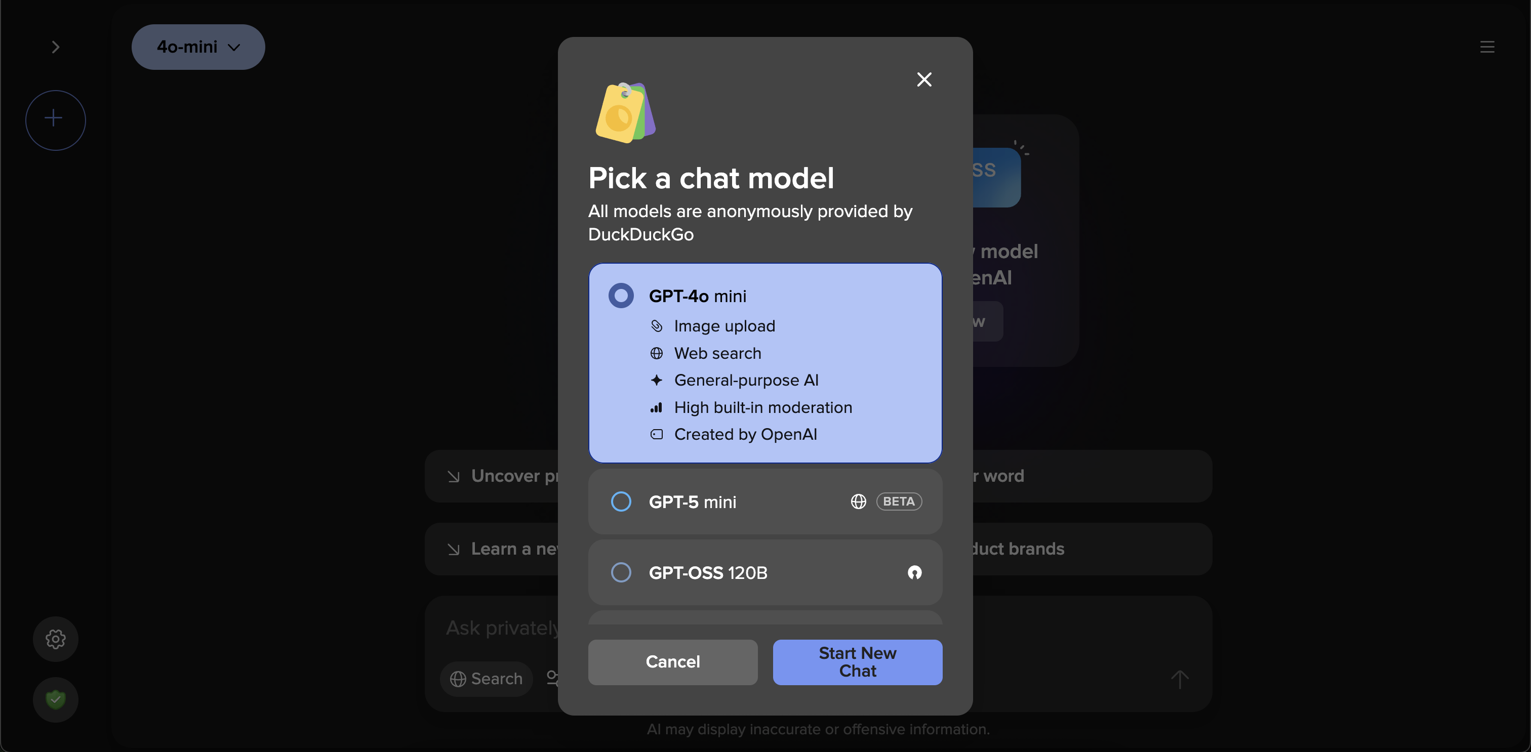 I prefer to use duck.ai instead (by the popular privacy search engine, DuckDuckGo), which allows you to switch between any desired AI model (ChatGPT, Claude, Llama, Mistral).