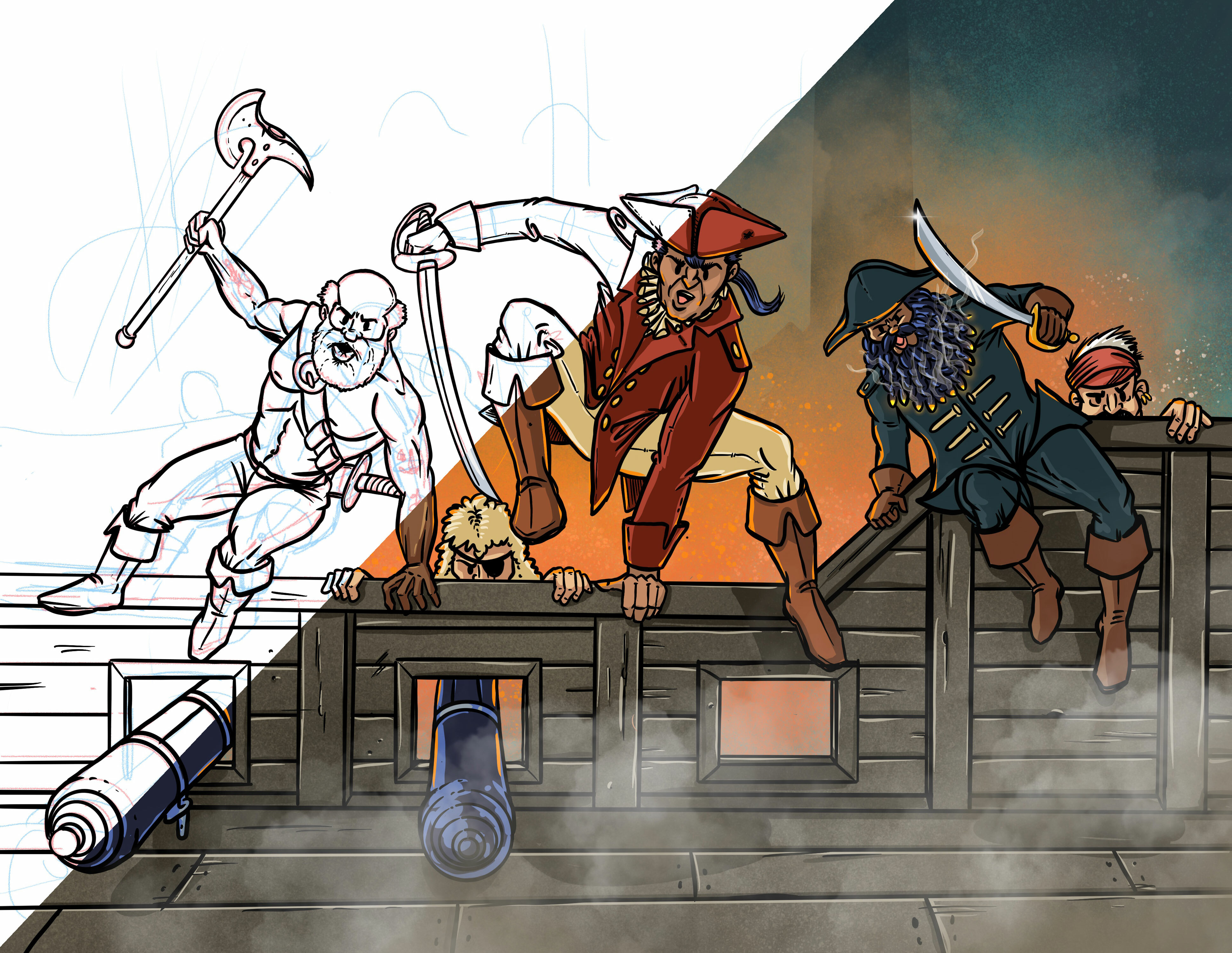 We're just putting the wraps on the sixth title in the Prince Martin Epic series so I thought it might be fun to share some art from the new book. Even more fun, the images below peel back the curtain, so to speak, and reveal some of the layers of sketches and line art that are done before the final color image.