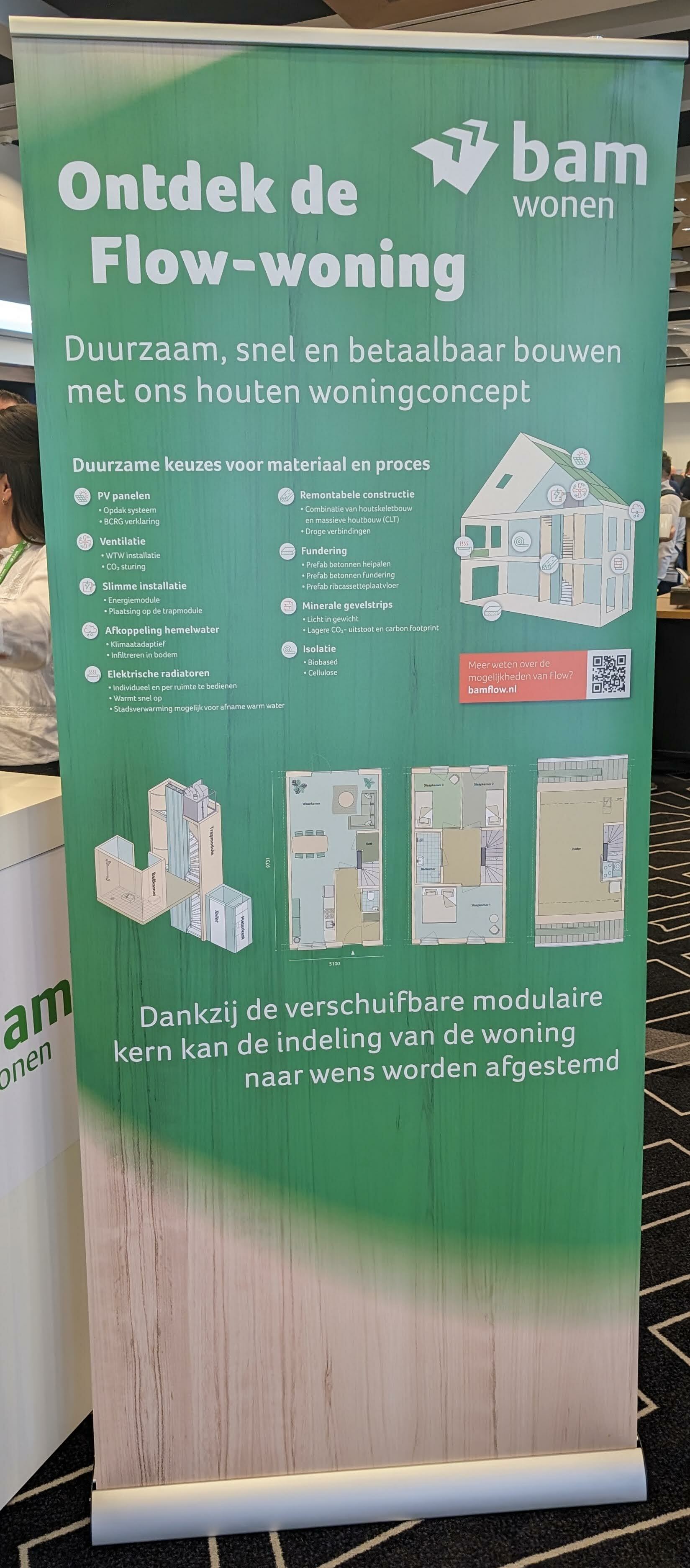 Wat opviel was dat er op de beurs eigenlijk alleen maar modulaire, circulaire en houten concepten werden gebracht. Deze tak van sport was lang niet betaalbaar en niet gebruikelijk maar lijkt nu "het nieuwe normaal" te worden voor bouwbedrijven en ontwikkelaars. Leuke concepten overigens gezien, niet van traditioneel te onderscheiden. In de fabriek gemaakt, houten constructie met steenstrips op de gevel.