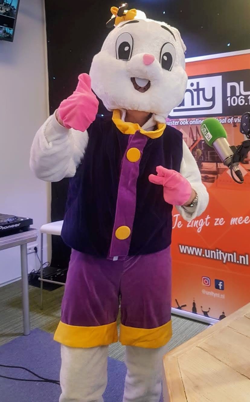 Clown bezoekt studio
