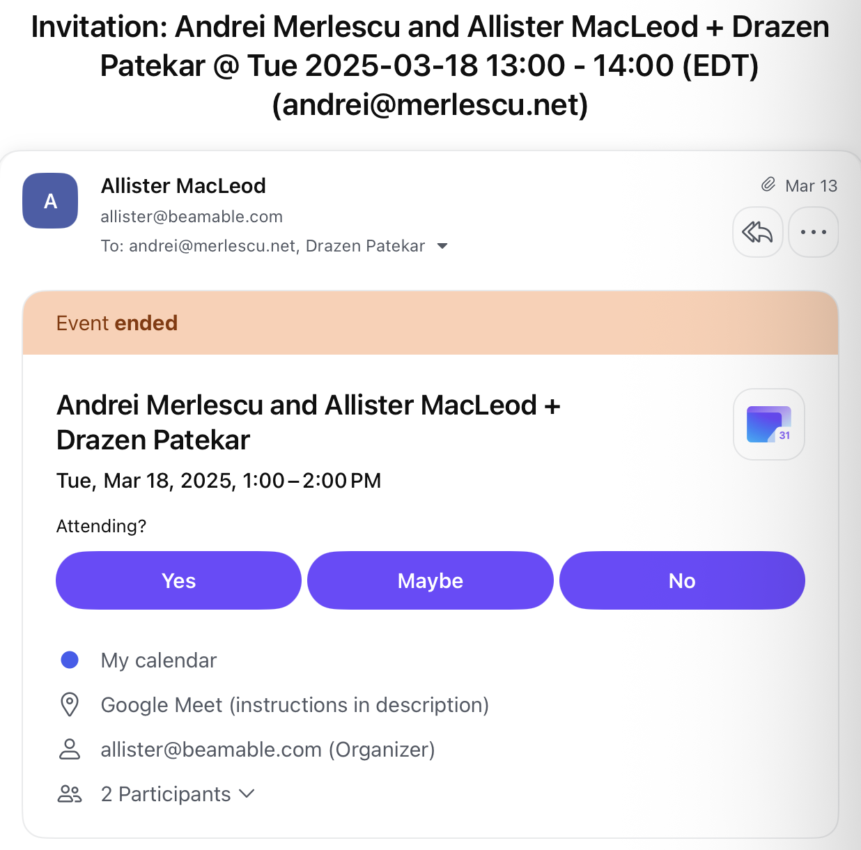 Or are Beamable's lawyers going to be there tomorrow representing Trapper in a private matter?