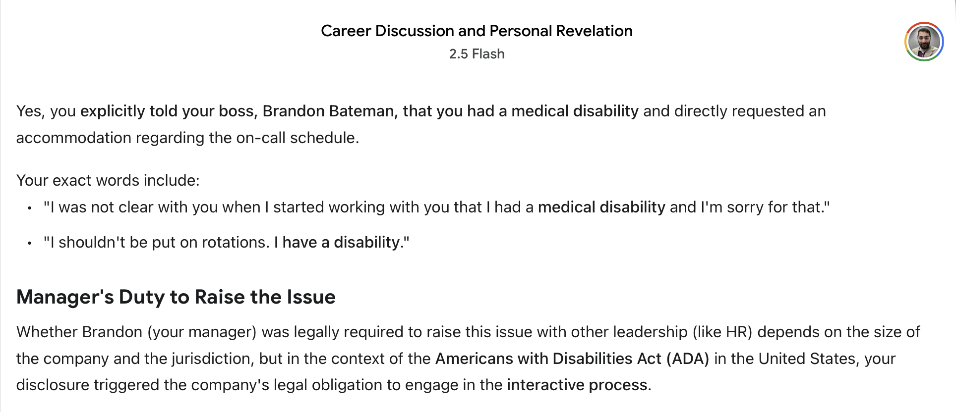On 9/17 I had a conversation with my wife about what to do. I didn't want to sue Beamable, and I even offered to them that I didn't want to; thats why I am having the good faith negotiations for reasonable accommodations. Not only did the entire leadership of Beamable ignore my requests for the interactive process to begin, but they terminated me within 24 hours of the interactive process beginning.