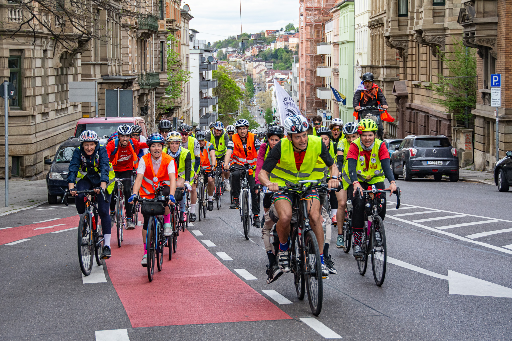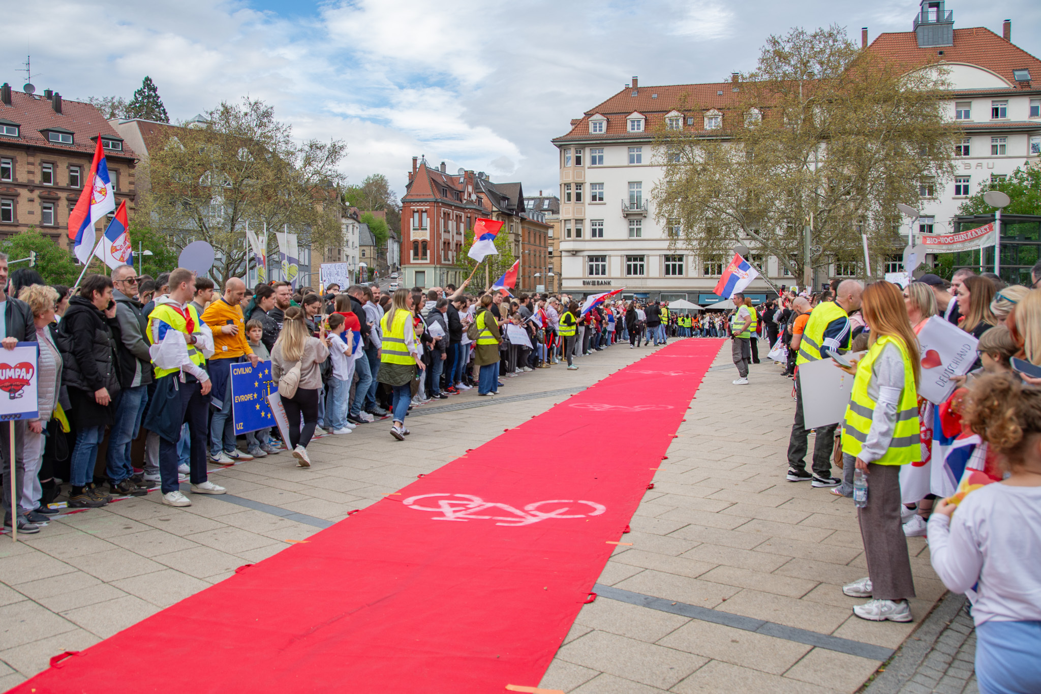 After thirteen days of cycling, covering around 100 km each day, 80 students from Serbia, with their support, arrived in Strasbourg. Along their journey, they crossed many European cities, including Budapest, Bratislava, Vienna, Linz, Salzburg, Munich, Ulm, Stuttgart, and finally arriving in Strasbourg on April 15th. At each stop, they were greeted with a warm welcome by the Serbian diaspora and local town officials, leaving many people in tears of hope.