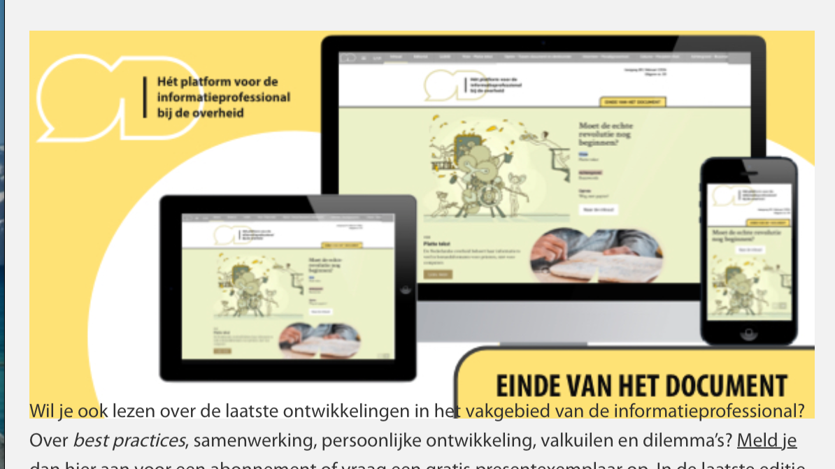 Uit de hoek van de informatieprofessionals was het na mijn post in augustus verrassend stil. Ik publiceerde met enige regelmaat in IP Magazine en OD Magazine, maar de vakexperts hielden zich publiekelijk koest. Tot vorige week, toen de vijftigste editie van Od Magazine op mijn deurmat viel. OD is hët vaktijdschrift voor overheidsdocumentatie, en het zijn juist deze mensen die ik het hardst wilde horen.