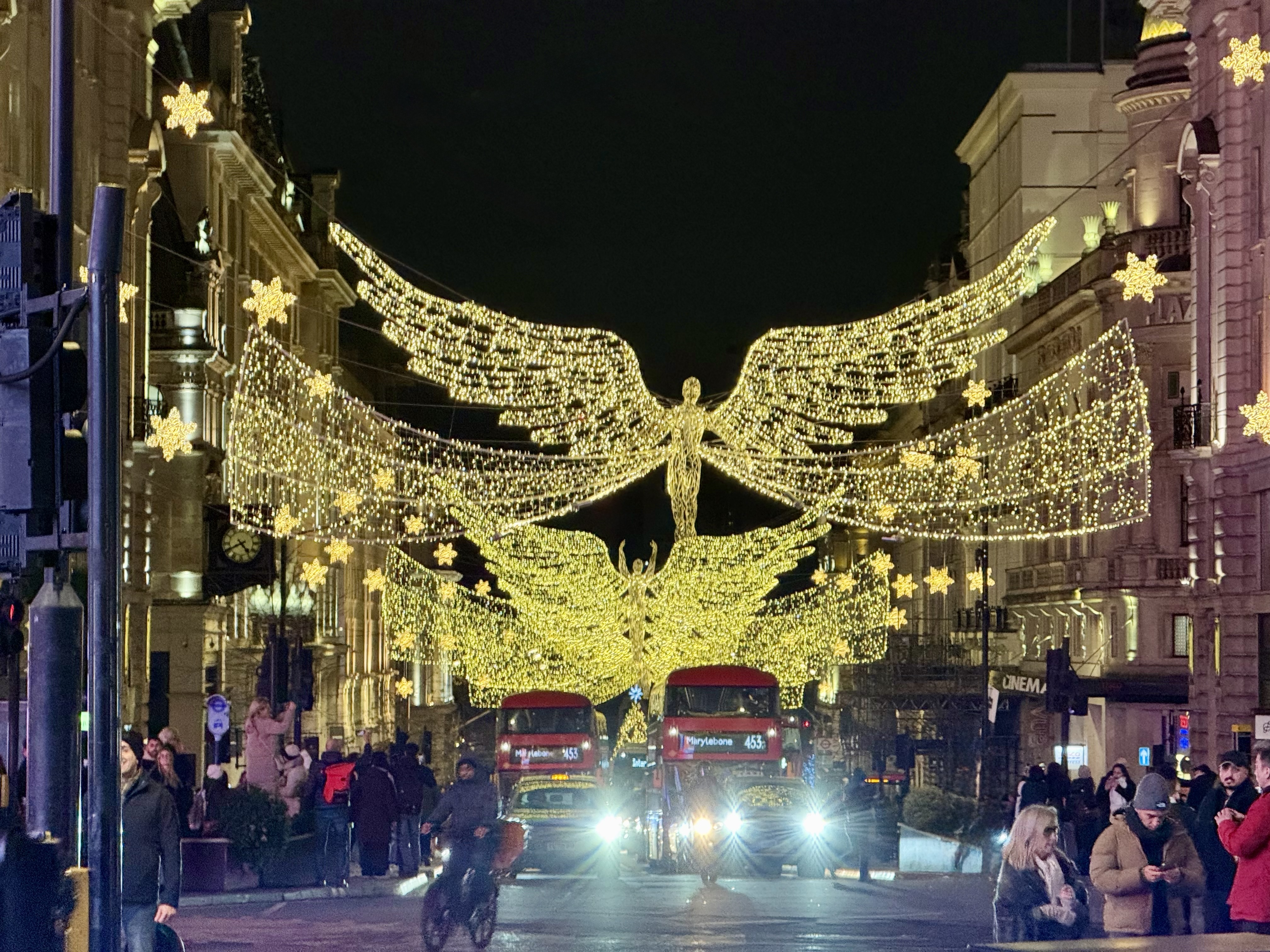 We begonnen in Londen. Door Belgische stakingen was de Eurostar flink vertraagd, maar de reis was verder goed te doen. De koffie aan boord is acceptabel genoeg 🤣. Mijn lief wilde vanwege de kerstsfeer naar Londen, en ze had volledig gelijk: al op St. Pancras hing een warm kerstsfeertje met lampjes, decoraties en gezelligheid, de Engelsen zijn daar goed in!