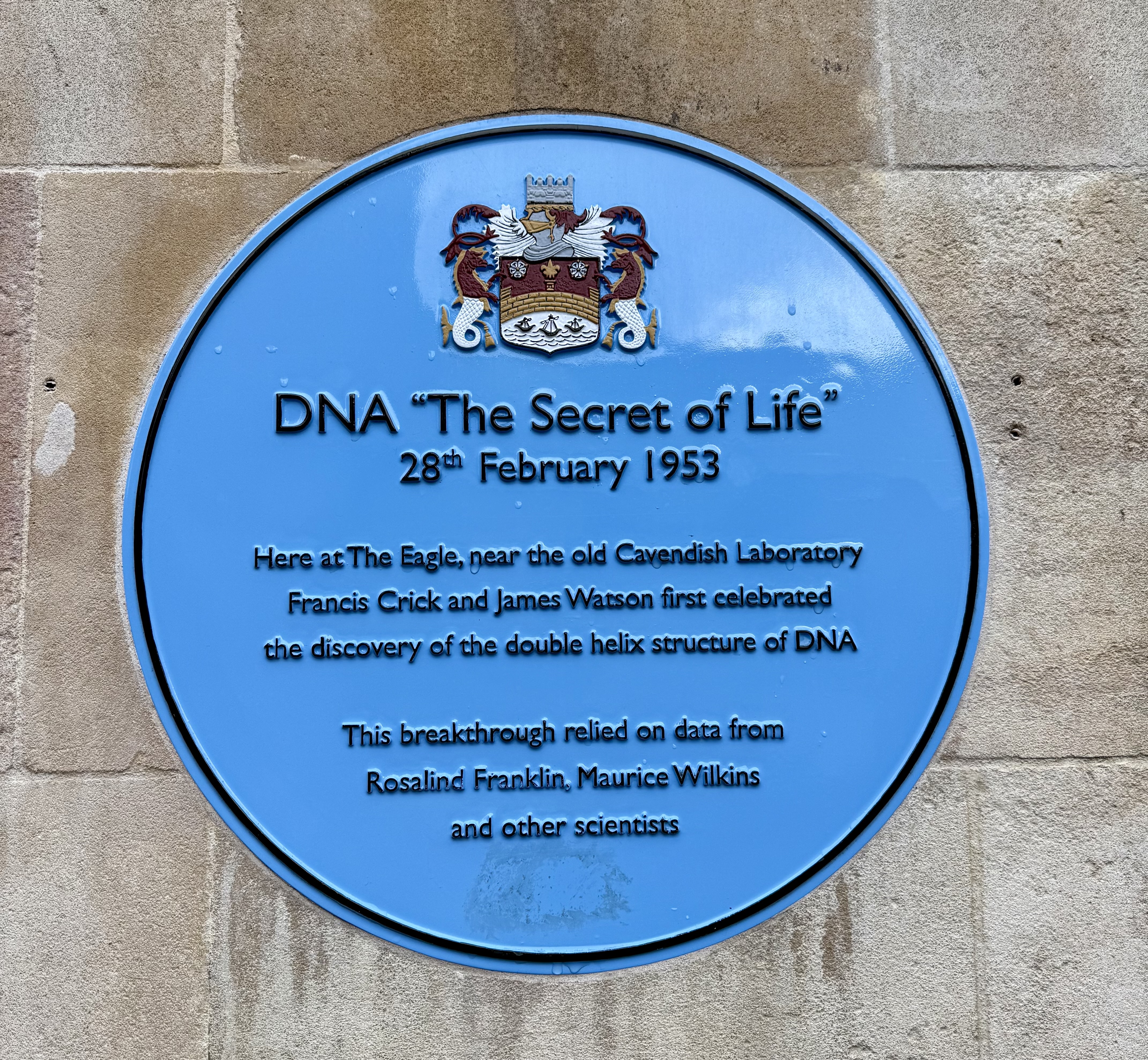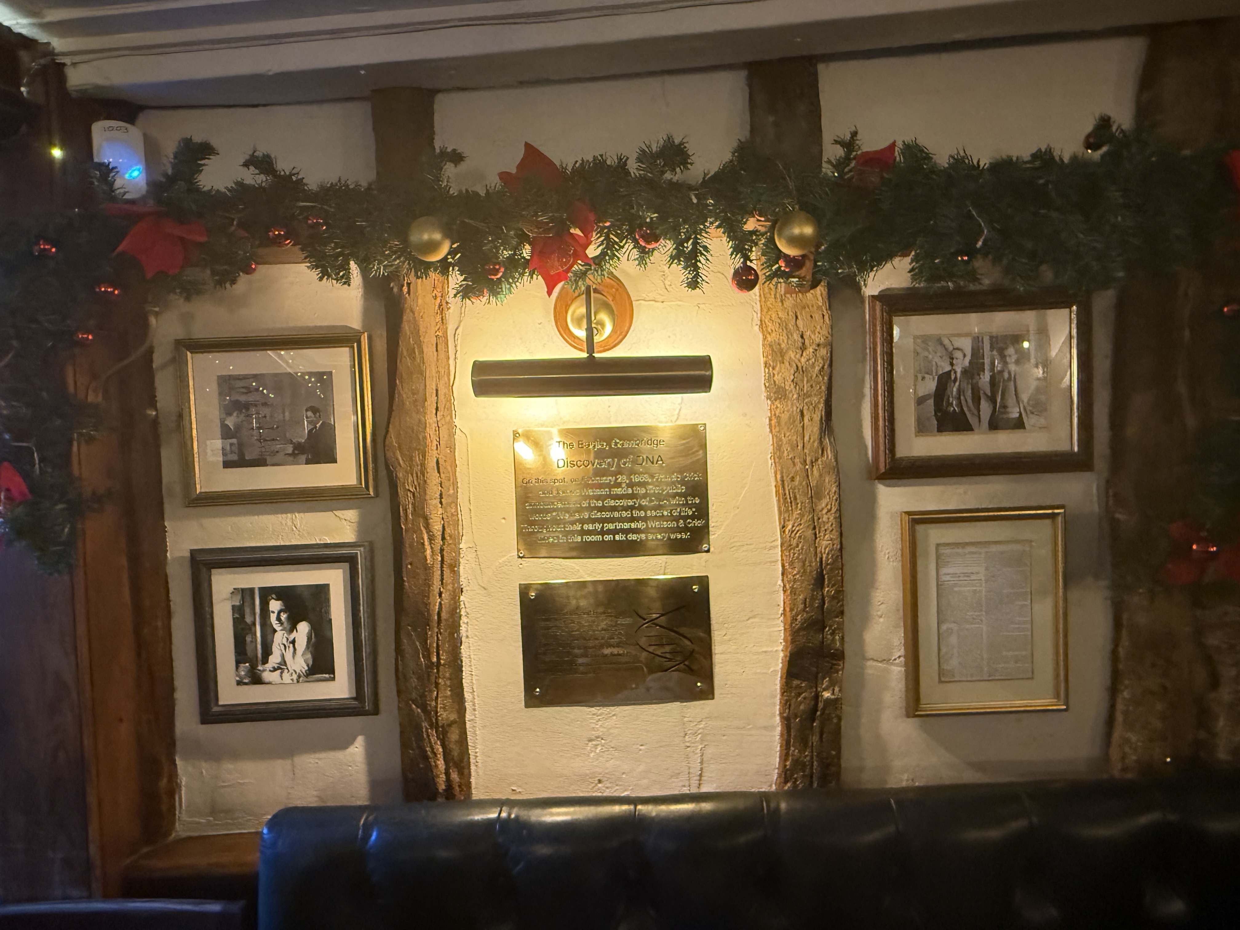 De dag erop bezochten we een plek waar ik per se heen wilde: The Eagle, de pub waar Crick en Watson ooit hun ontdekking vierden (Sinds ik The Race for the Double Helix zag, heeft dat verhaal een speciale plek in mijn hoofd. Op dag 1 was het te druk voor een biertje, maar we hadden nog een dag.