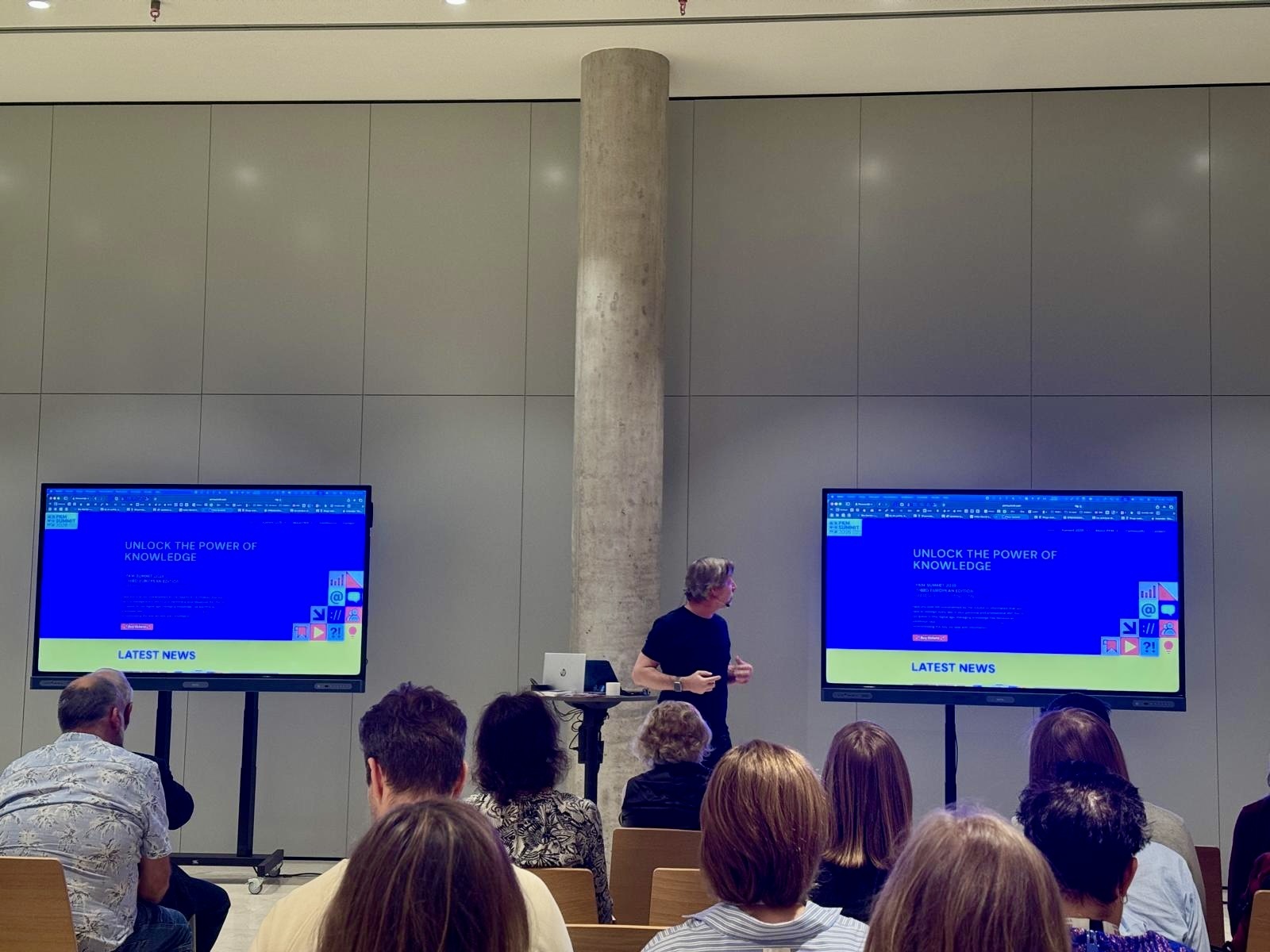 Aan het einde van de ochtend mocht ik in de Okapi-zaal optreden. Over mijn lievelingsonderwerp. De zaal zat goed vol, met Guido vooraan. Ik vertelde over Obsidian, over meta-data, over PKM en over hoe mijn infarct me nog meer leerde over omgaan met informatie. En over de Summit in maart en waarom informatie opslaan in documenten een heel slecht idee is (en zeker als je met AI wat wil doen).