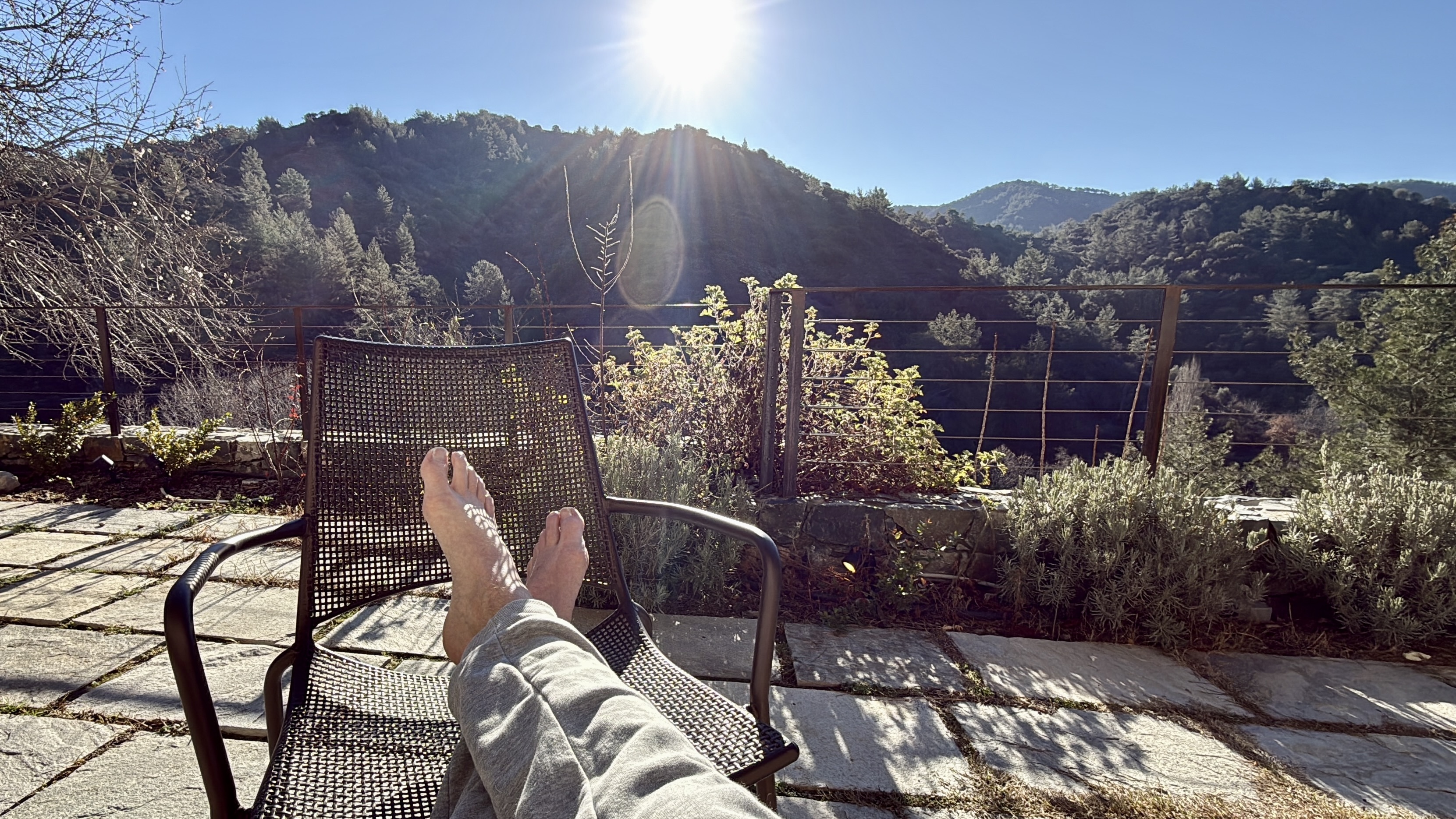 Ik had eigenlijk gepland om een weekje op een schip naar de Noordkaap te gaan zitten om het Noorderlicht te zien terwijl ik aan mijn nieuwe boek wilde werken maar dat kreeg ik niet rond dit jaar. Mijn lief vond een geweldig plekje in de bergen van Cyprus met een open haard en dat was een meer dan prima alternatief. Ons eerste weekje naar wat zon sinds lange tijd, door het herseninfarct van vorig jaar.