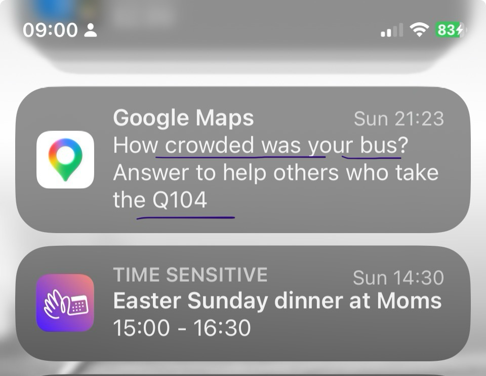 Possibly the question from Google Maps is about the morning trip but with a 7 hour delay? Maybe. Though funnier to wonder if my biking pattern like that of a bus 😆