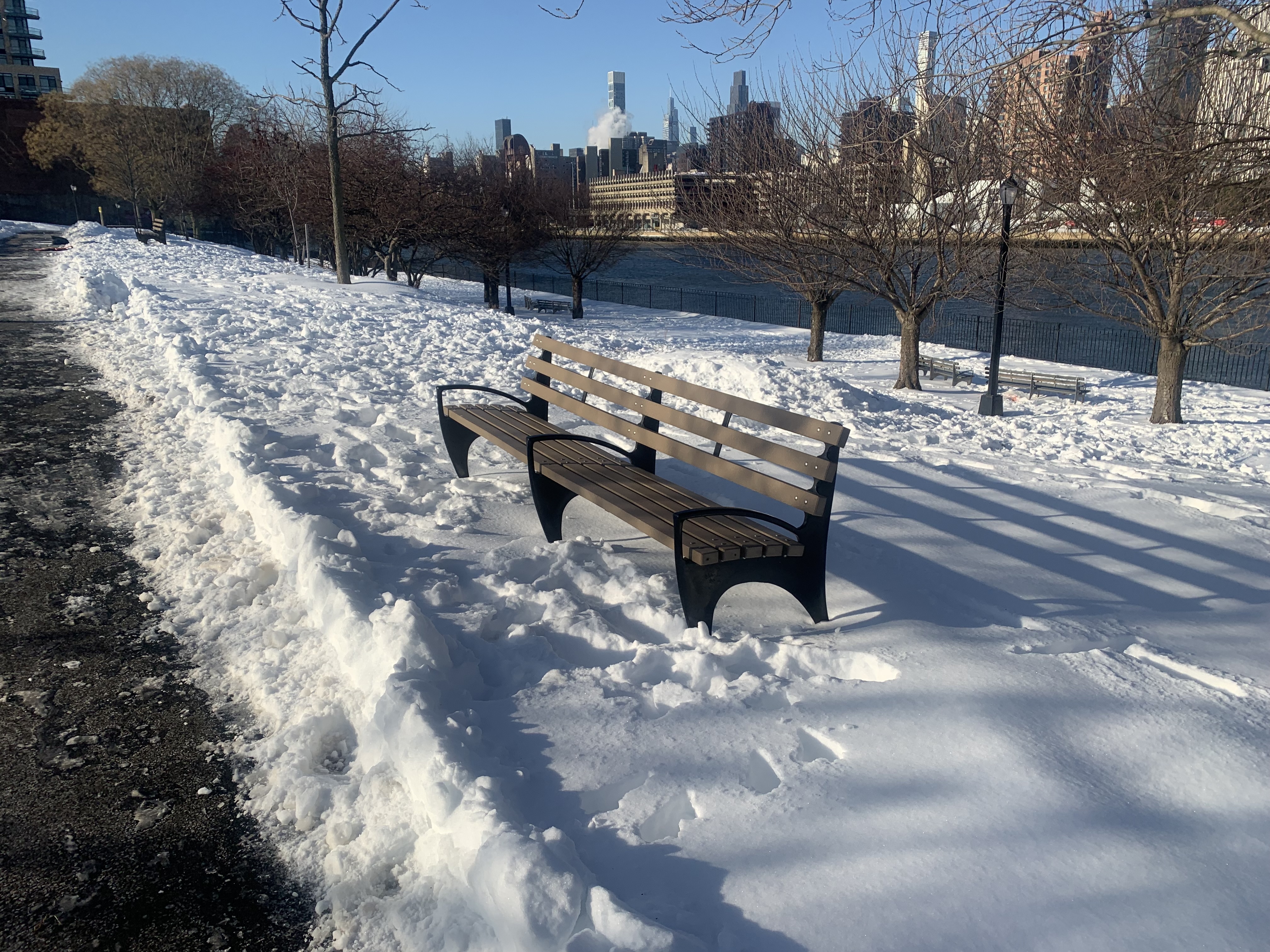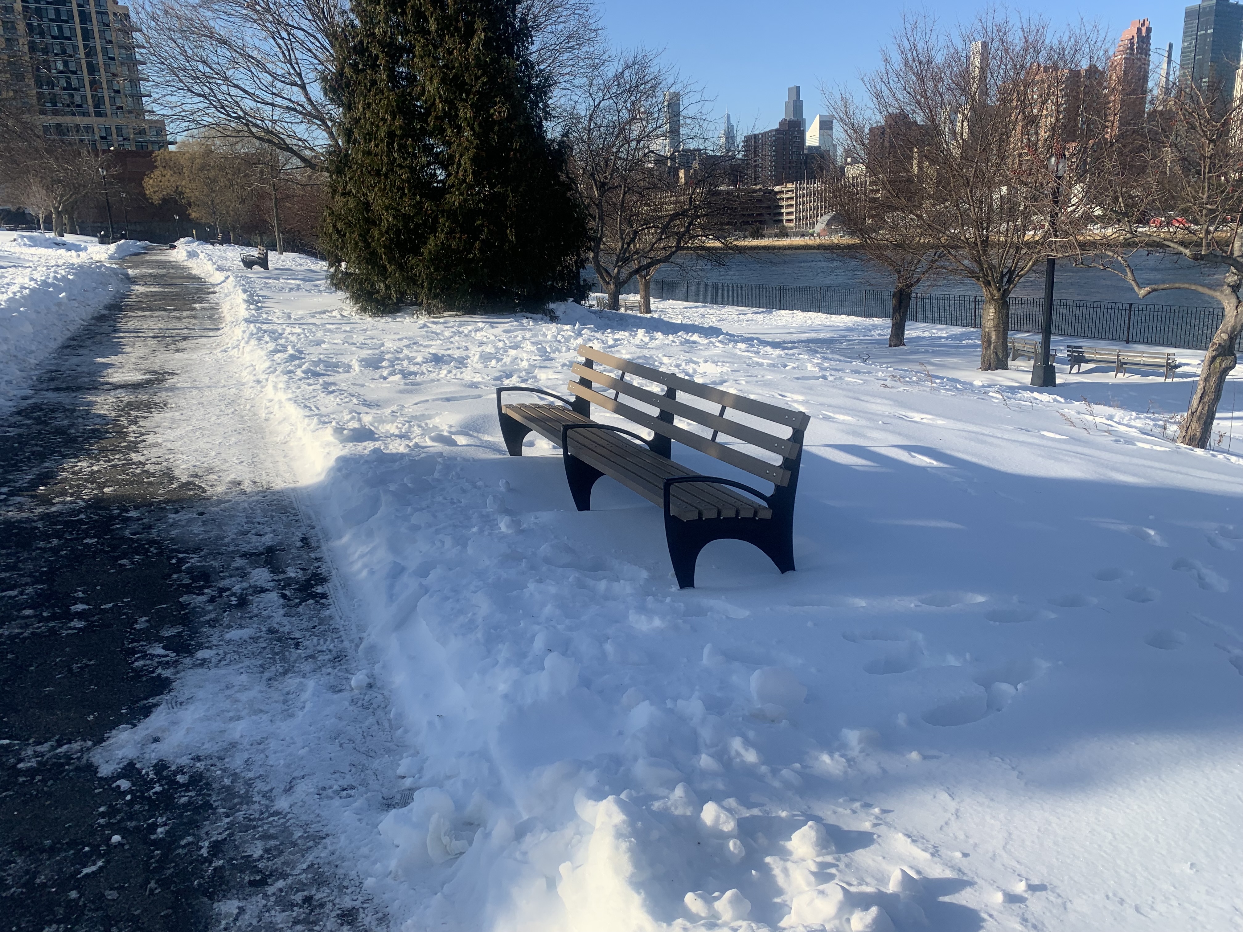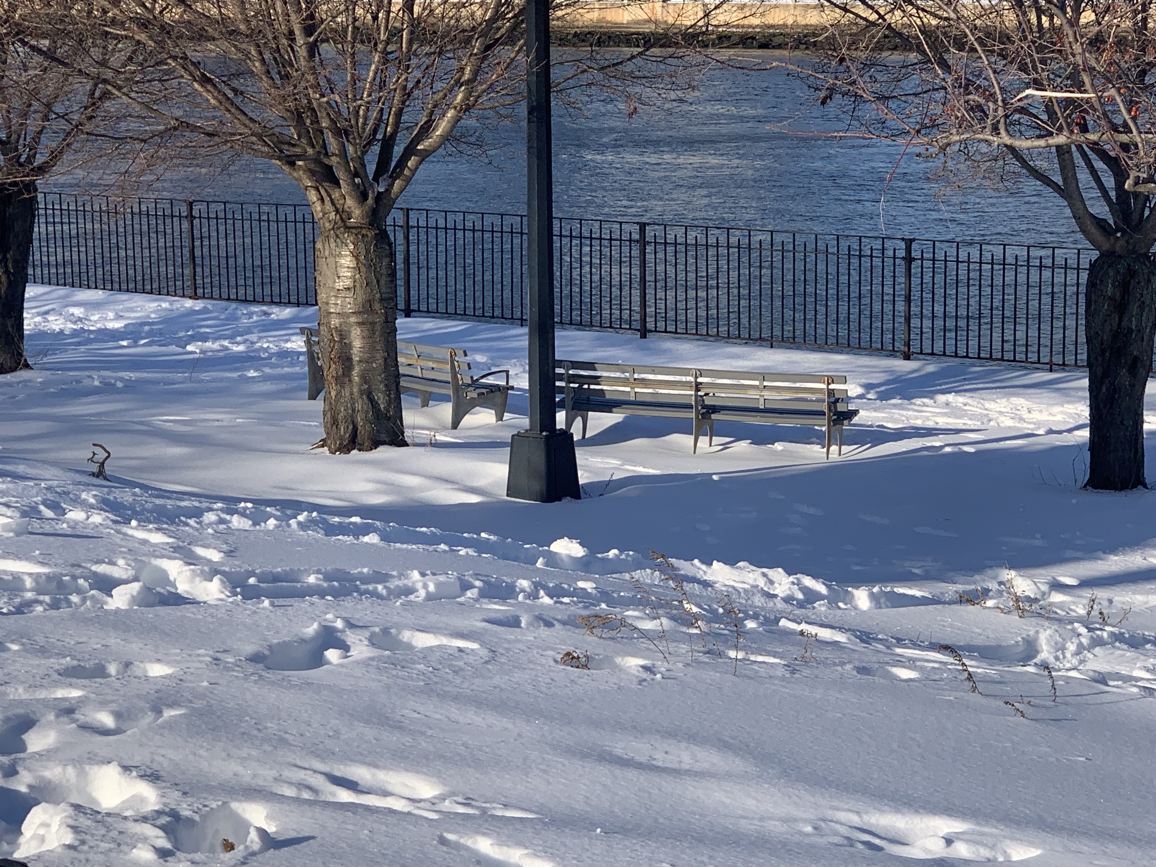 Mysteriously all the benches in this park I'm walking through are better than any other object at not getting covered in snow.