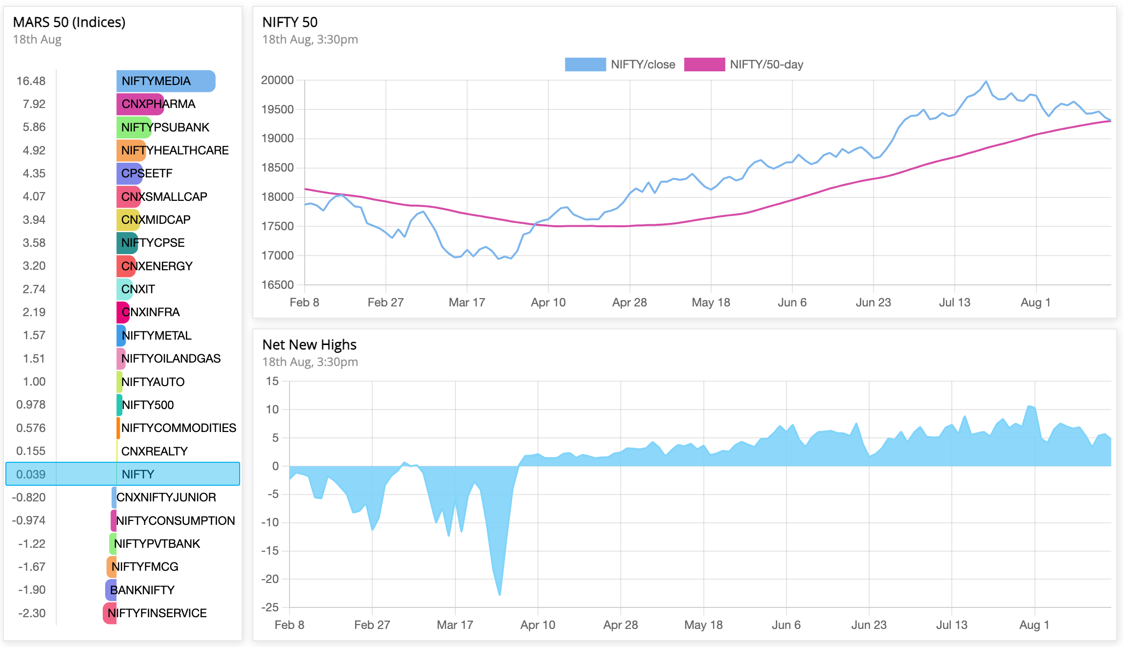 ⦿ Media, Pharma/Healthcare & PSUbank are the top indices showing absolute out-performance.