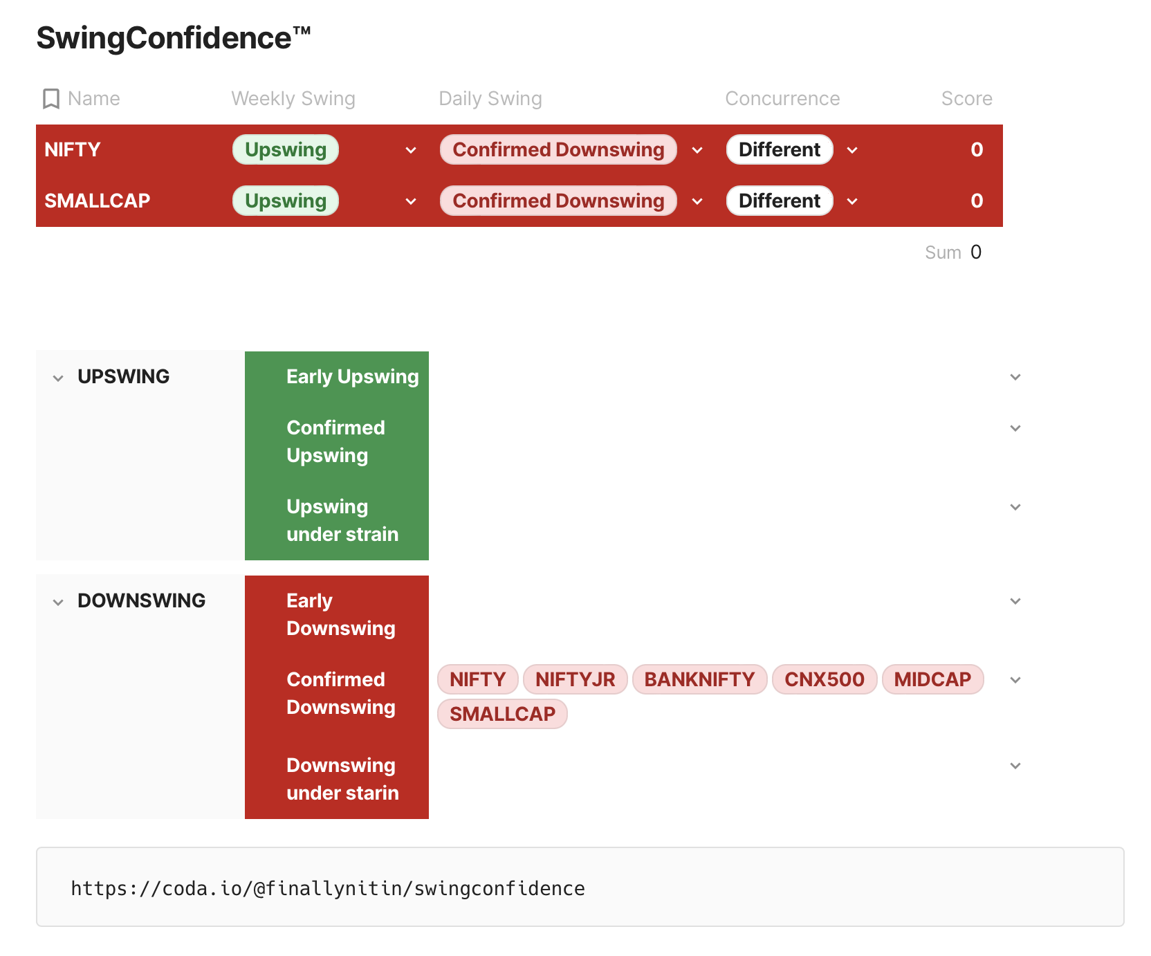 ⦿ Both Nifty & Smallcap indices are in a Confirmed Downswing. Both indices are still in a weekly upswing. ⦿ Swing Confidence is now 0. Long-only swing traders should stay on the sidelines, & wait for better conditions. ⦿ Pharma & FMCG are the only indices in a confirmed upswing. All other indices are in Confirmed Downswing.