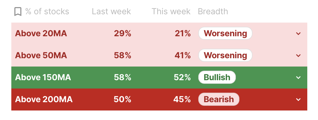 ⦿ Market breadth further worsening on both lower & intermediate timeframes. ⦿ Higher timeframes also turning bearish.
