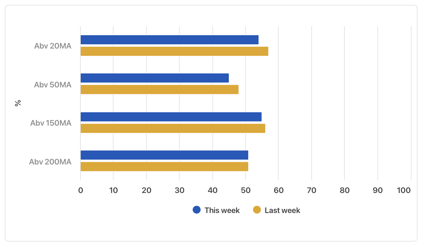 ⦿ Market breadth marginally worse on all timeframes. ⦿ Intermediate timeframes yet to give a fresh buy signal. ⦿ Higher timeframes stay bullish.