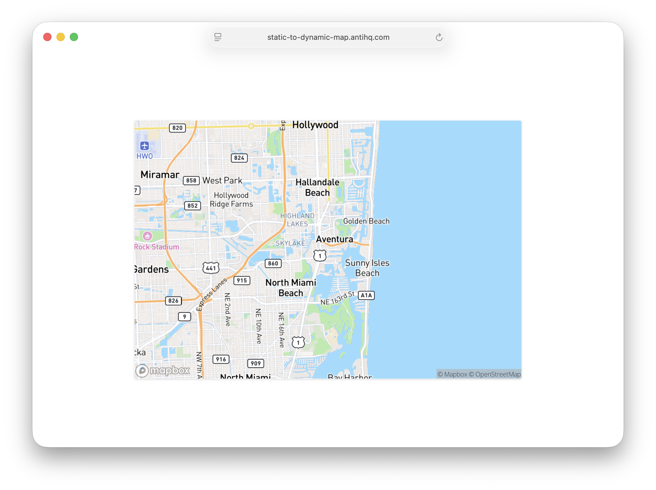The static image URL includes your marker and coordinates, so it looks identical to the dynamic map at first glance.