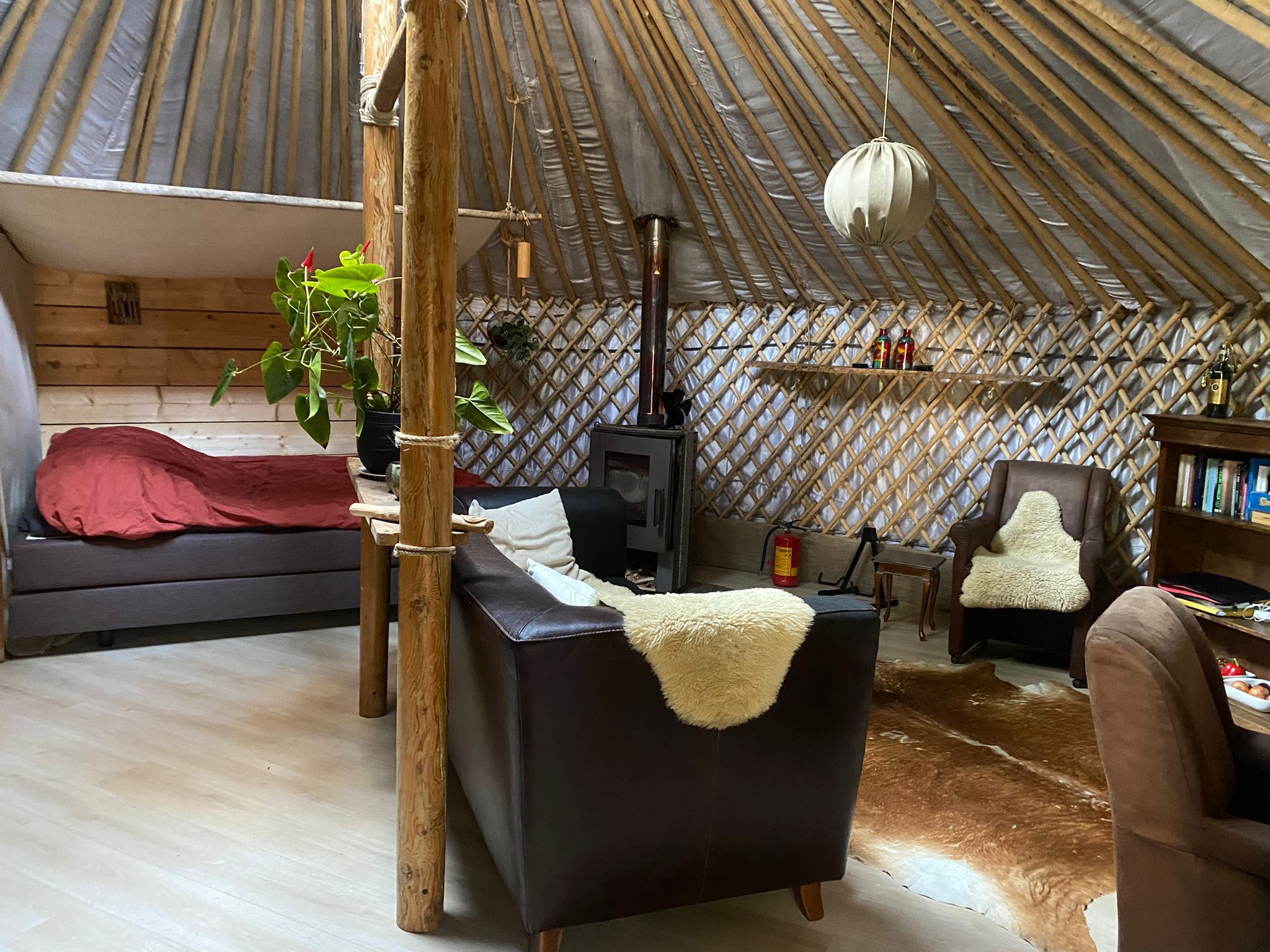 Yep, we wonen na onze reis alweer een tijdje in het bos. Een ding was helder toen we terug kwamen, we willen zo veel mogelijk buiten leven. Dat onze oudste zoon en zijn vriendin ons spliksplinter nieuwe appartement (waar we een hele maand in hebben gewoond...) heeft ingenomen speelt overigens ook mee 😉. Enfin, eerst de camper tussen Soest en Amersfoort tussen de reeën, konijnen en eekhoorns (ja dat kan gewoon op 12 minuten afstand van Amersfoort CS) geplaatst. Veel buiten, wandelen, kampvuurtje, dat werk. Toen kwam er ineens een Yurt voorbij. Nou zijn er maar weinig plekken in centraal Nederland waar je met een Yurt in een bos kan staan, dus die kans hebben we direct gepakt!