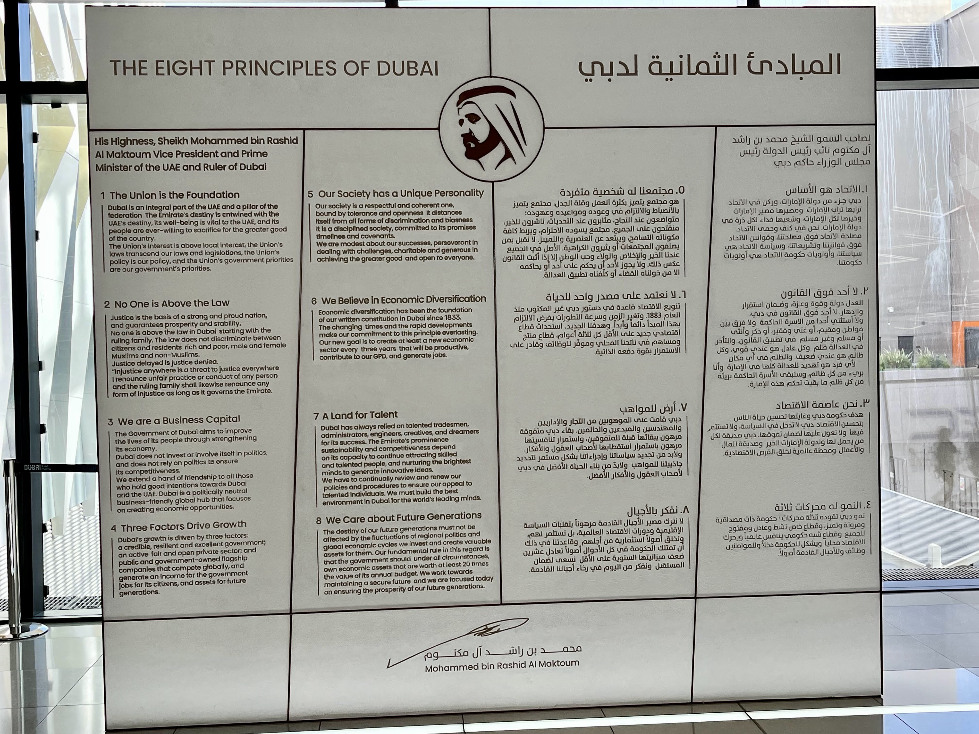 The cynical reader may ask why someone who resides for most of the year in a dictatorship cares anything for democracy. While a fair observation (the two systems are structurally different) choosing to live in Dubai is my own form expression. Not to mention the 8 principals of Dubai (see below, in particular 3 & 8) being a breath of fresh air after watching Europe's trajectory over the last fifteen years.