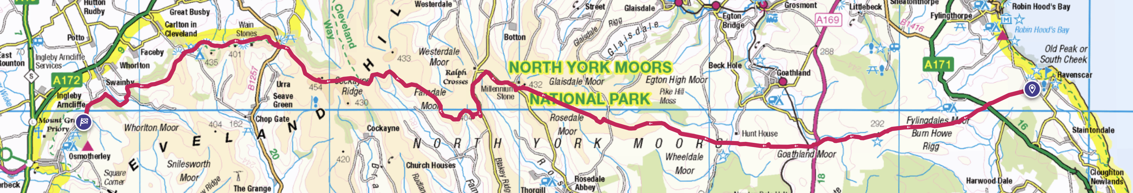 Sunday 08:00 -- leave Ravenscar and head back across the Moors Monday 01:00 -- arrive back at Osmotherley