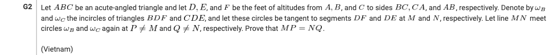 To choose a math problem, I just kind of randomly selected a problem from AoPS. I chose the G2 problem from the 2019 IMO Shortlist.