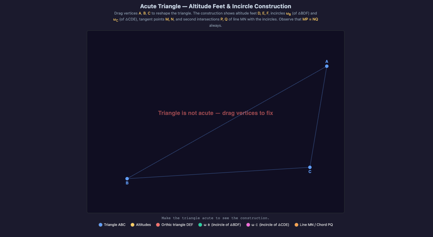 If by dragging the points we break the rule that the triangle is acute, we are told about the problem.