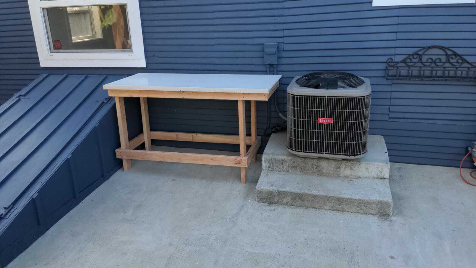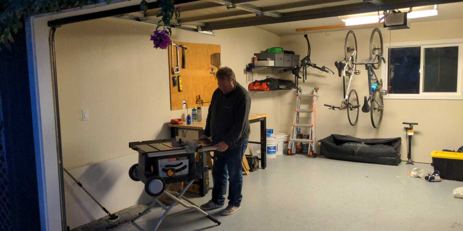 Their projects included organizing the garage workshop by hanging bikes, repairing a switch on the table saw gifted to Eric by his uncle, and building a base for a Corian countertop left by the previous owner that would become the perfect place for the pizza oven and prep station. I sat in the sunshine observing and chuckled. They were two-peas-in-pod. These pics show the results of their efforts.
