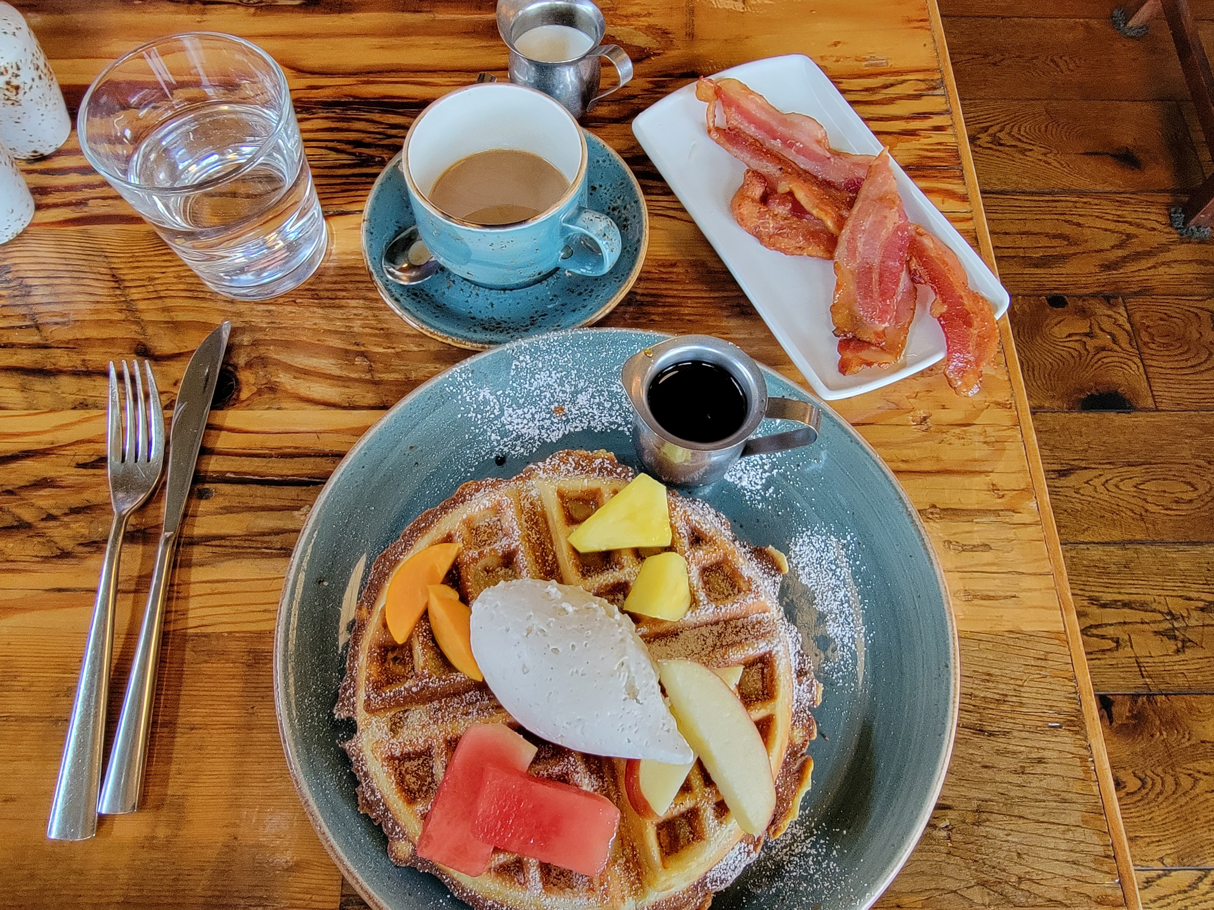 Eric treated us to his favorite breakfast spot in downtown San Jose. The food is California amazing, especially because I don't have to my own real maple syrup for my waffle!