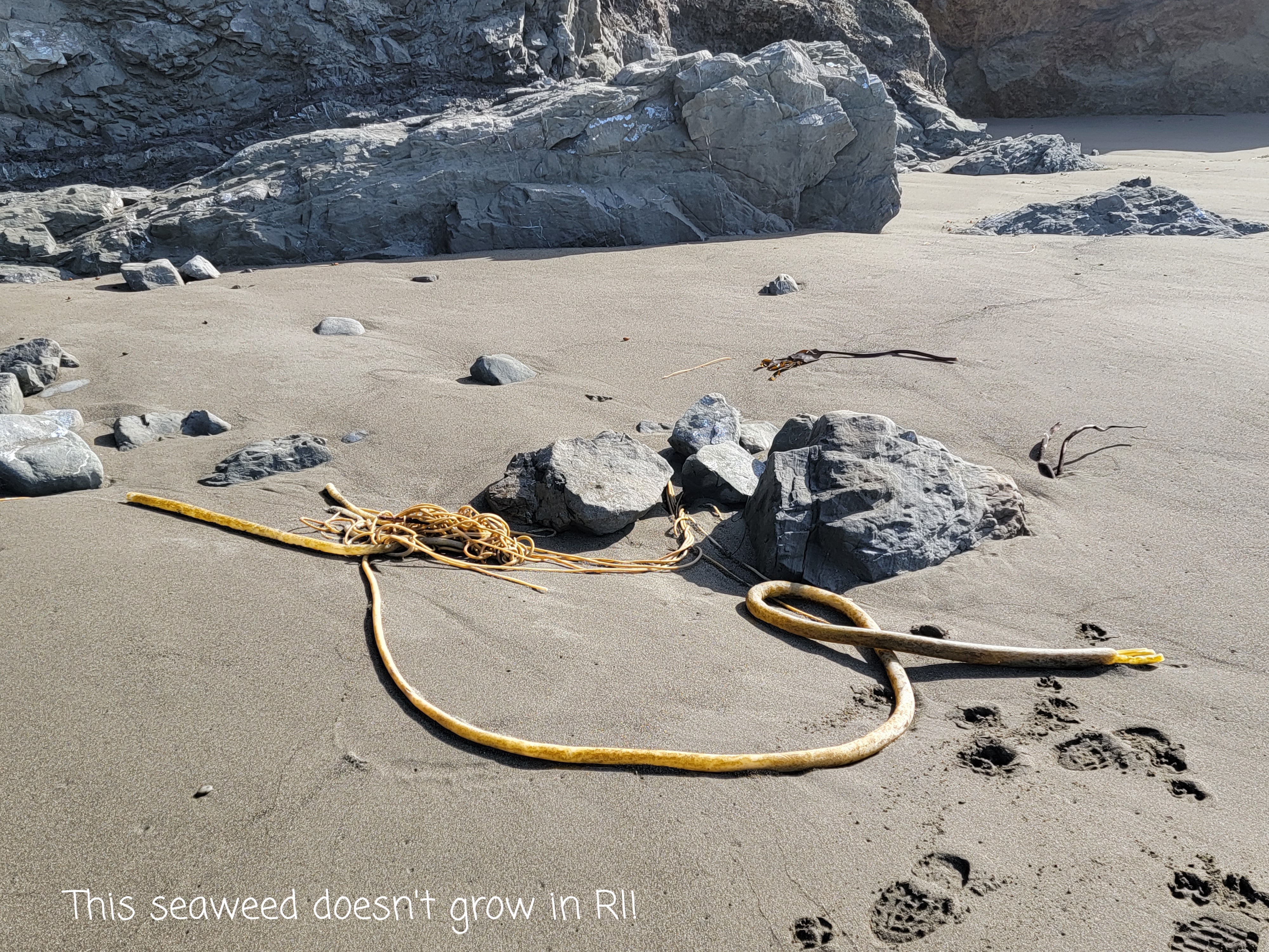 The sand was compacted with few shells or rocks, only a scattering of very long, alien-looking, rubbery stalks of seaweed that could props in a sci-fi or horror flick.