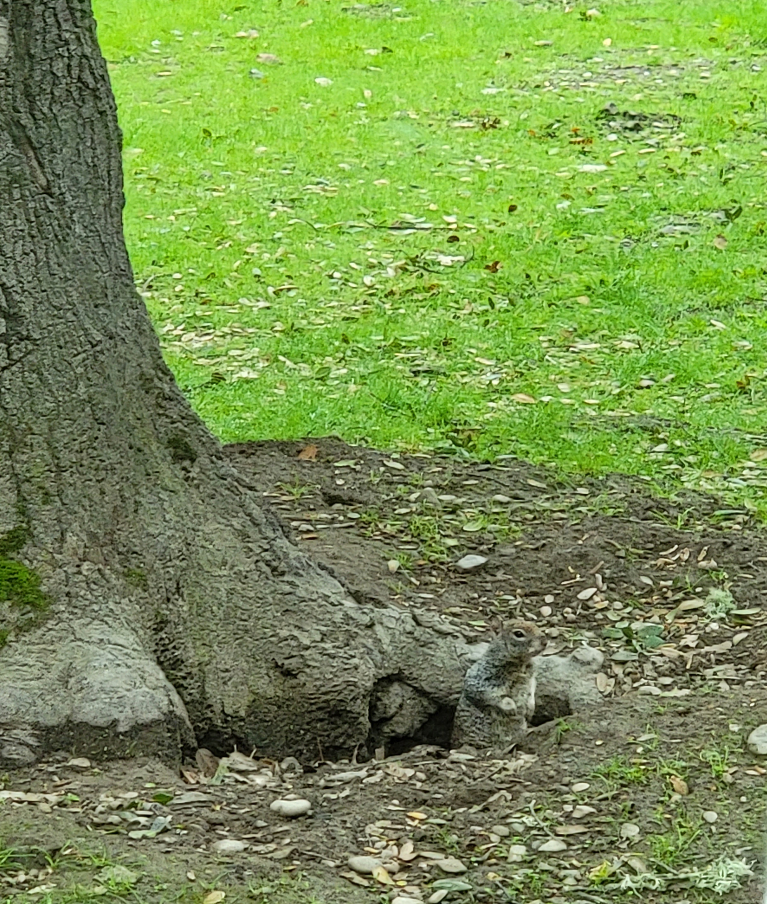 The ground was dotted in gopher holes. Quinnbo was in heaven with all the scents. Out popped a gopher from an opening at the base of a unique oak tree, with the tiniest leaves. Their shapes were asymmetrical and organic, nothing like native oak leaves in New England.
