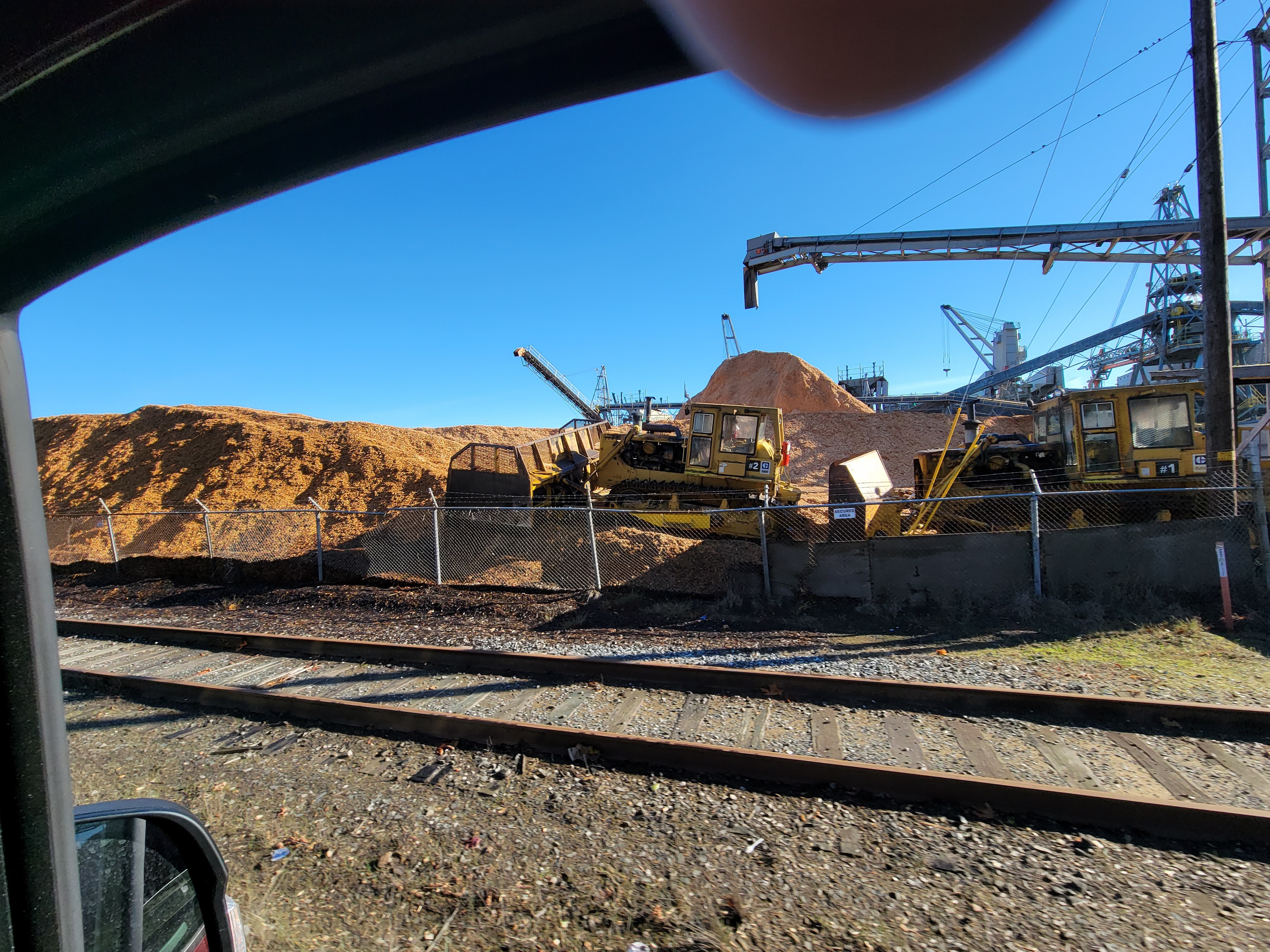 I was fascinated by piles and piles of wood chips and logs being processed in this town. One would never think there was a shortage of lumber during the building process with these scenes. We sent some pics to our builder, as a joke of course!