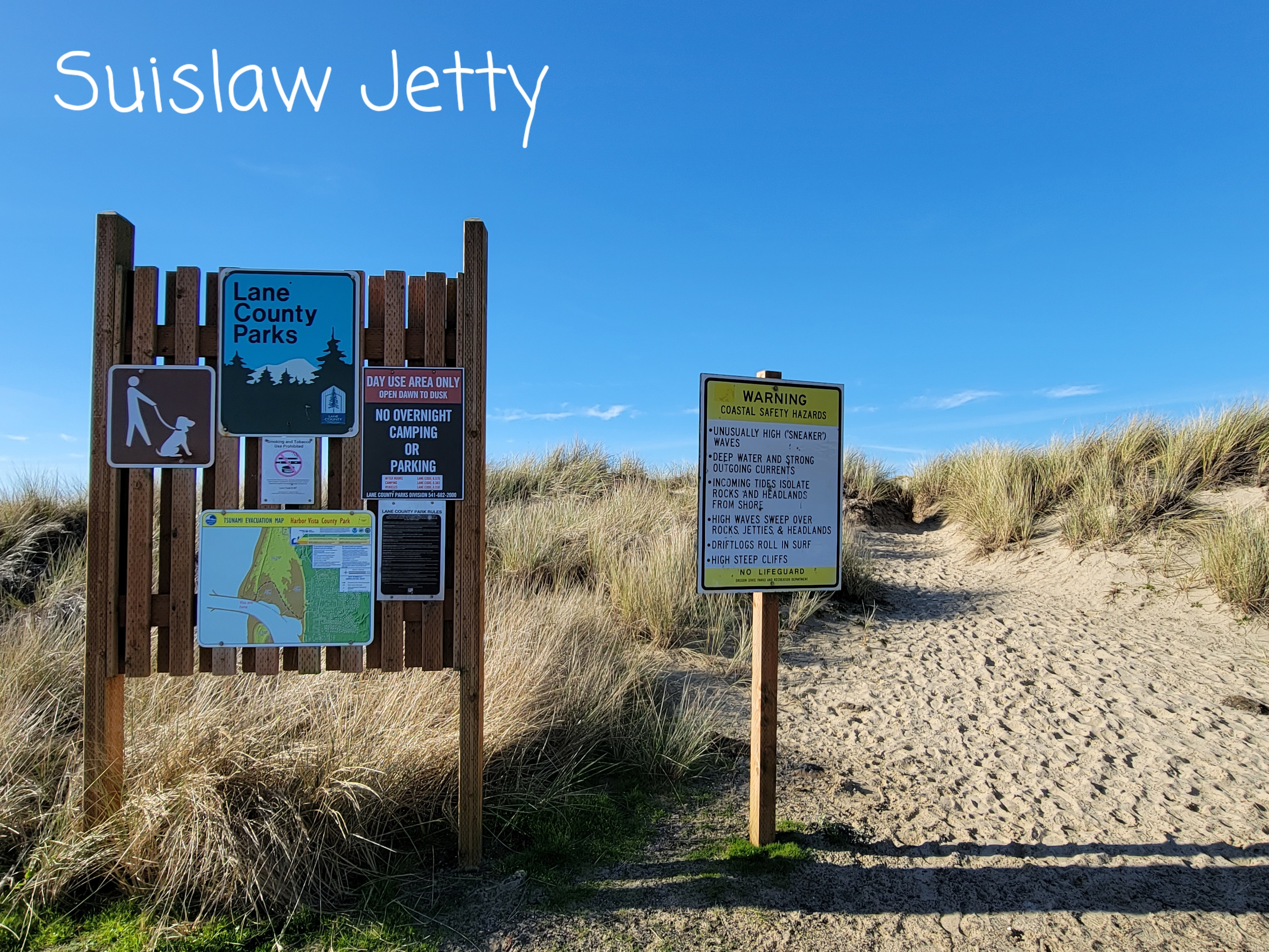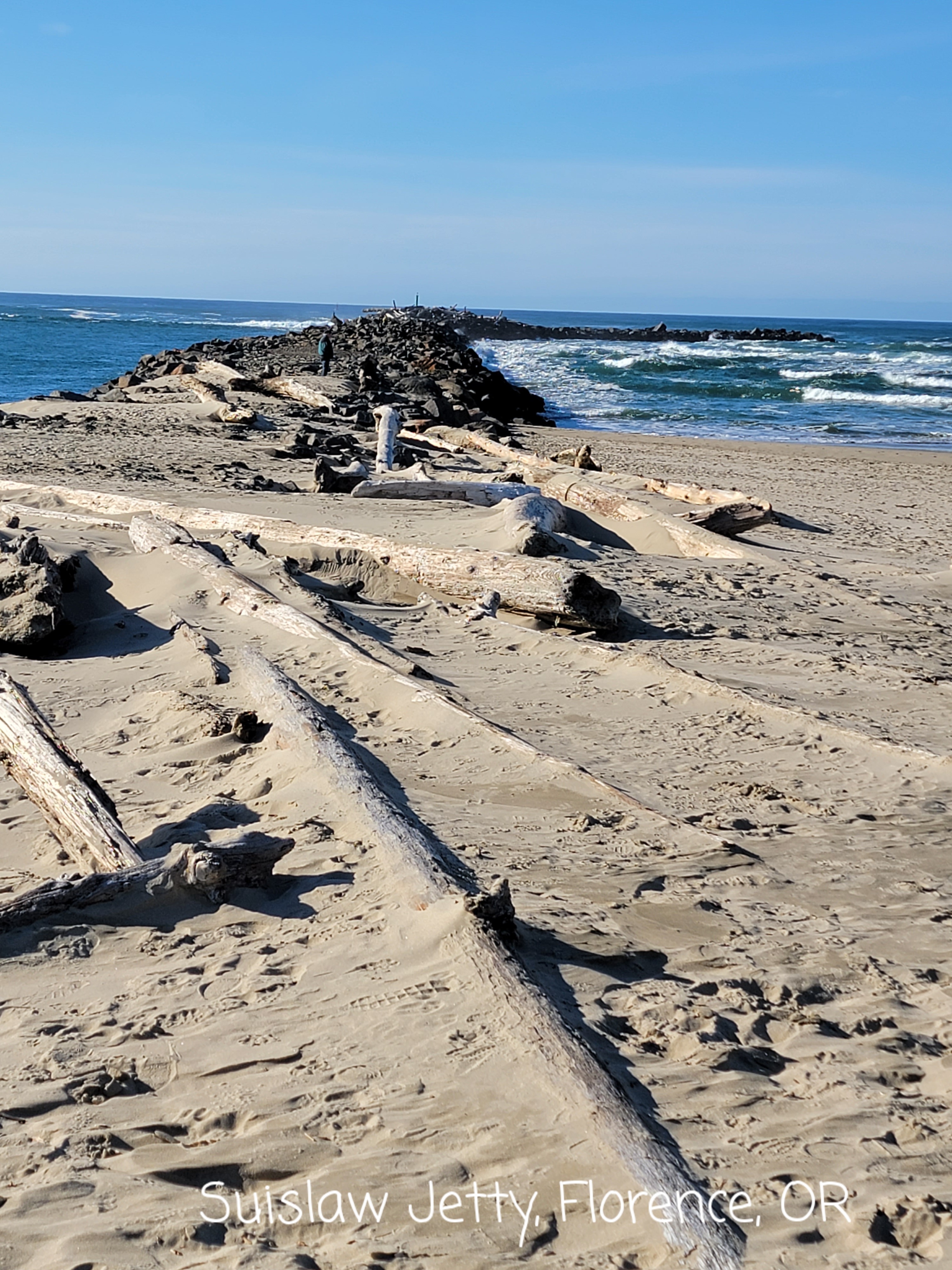 We drove past some beautiful places. In Oregon Dunes National Forest, there were beachfront businesses and campgrounds dedicated solely to dune buggy adventures. I saw a 12 passenger dune buggy resembling the stretch Lincoln Navigator limos you see in Manhattan. Further north, the Suislaw Jetty appeared interesting, so we took some time to explore the beach and exercise.