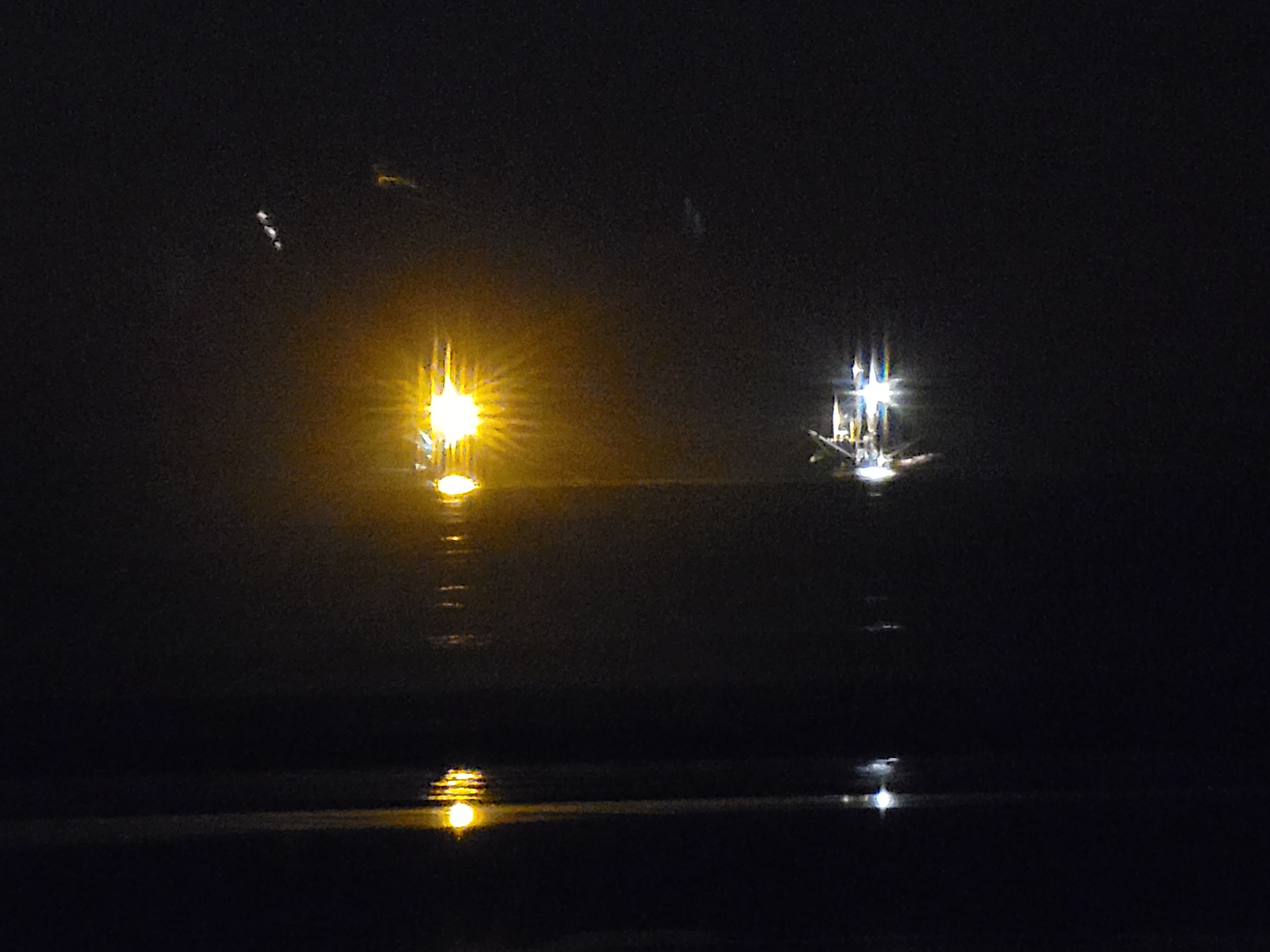We watched as one large fishing boat returned to port, while another was heading out to sea, despite the onset of darkness. There were serious fishing vessels here.