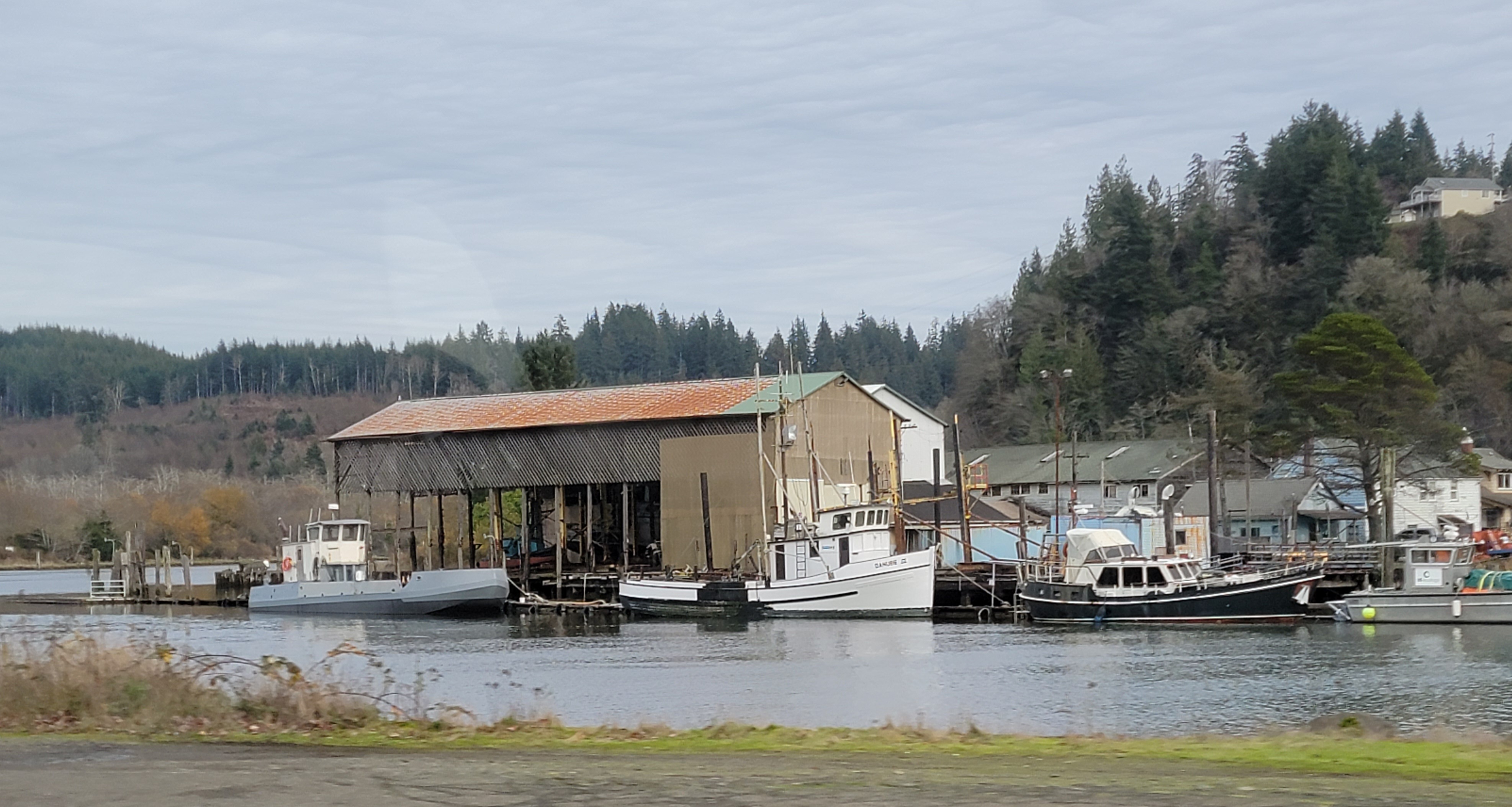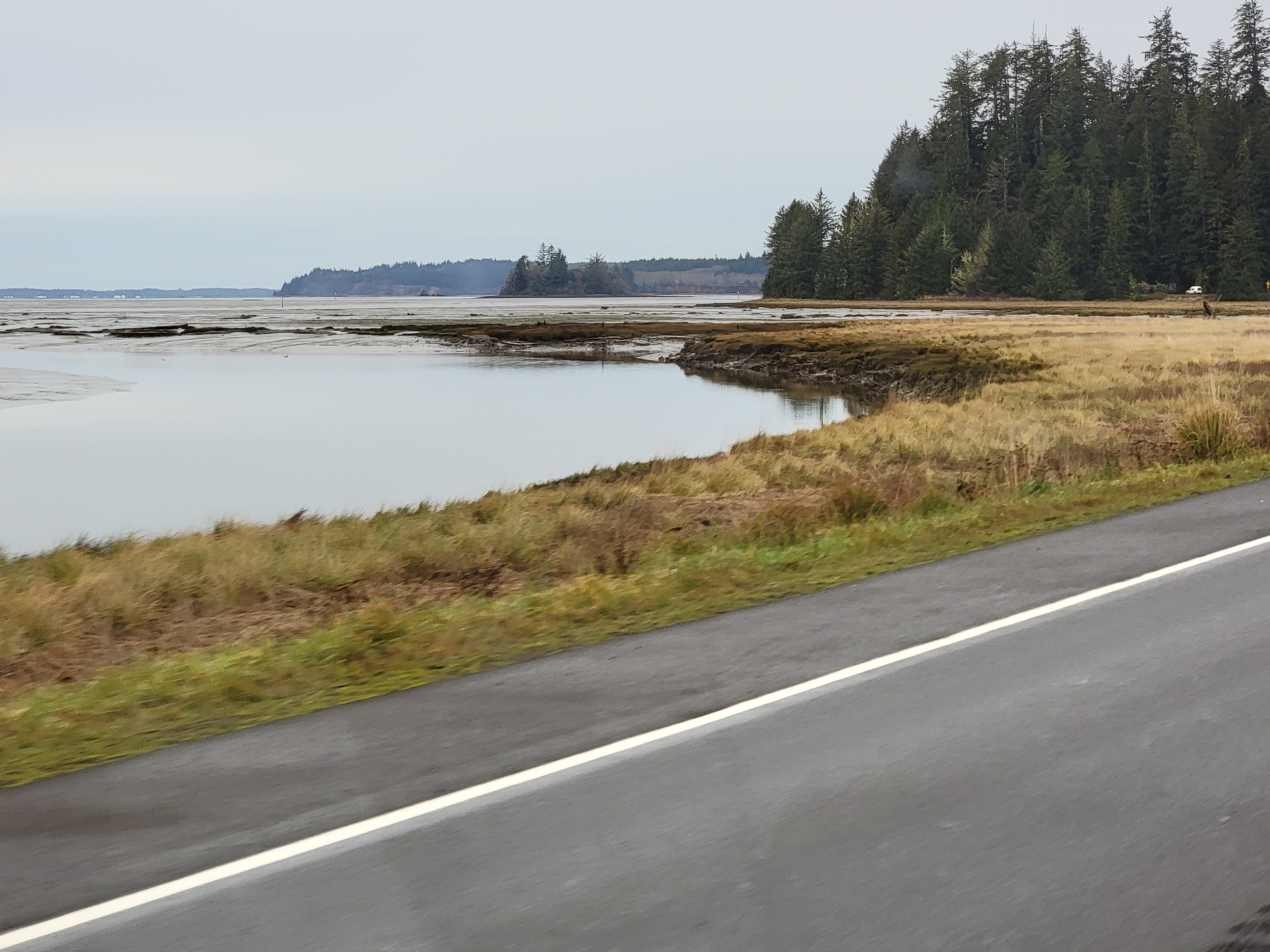 After filling the propane, our trip north on the 101 was beautiful, driving along the coast through inlets and sloughs, on bridges and by vast areas of serious logging and lumber mills. (Again, What shortage of lumber?????)