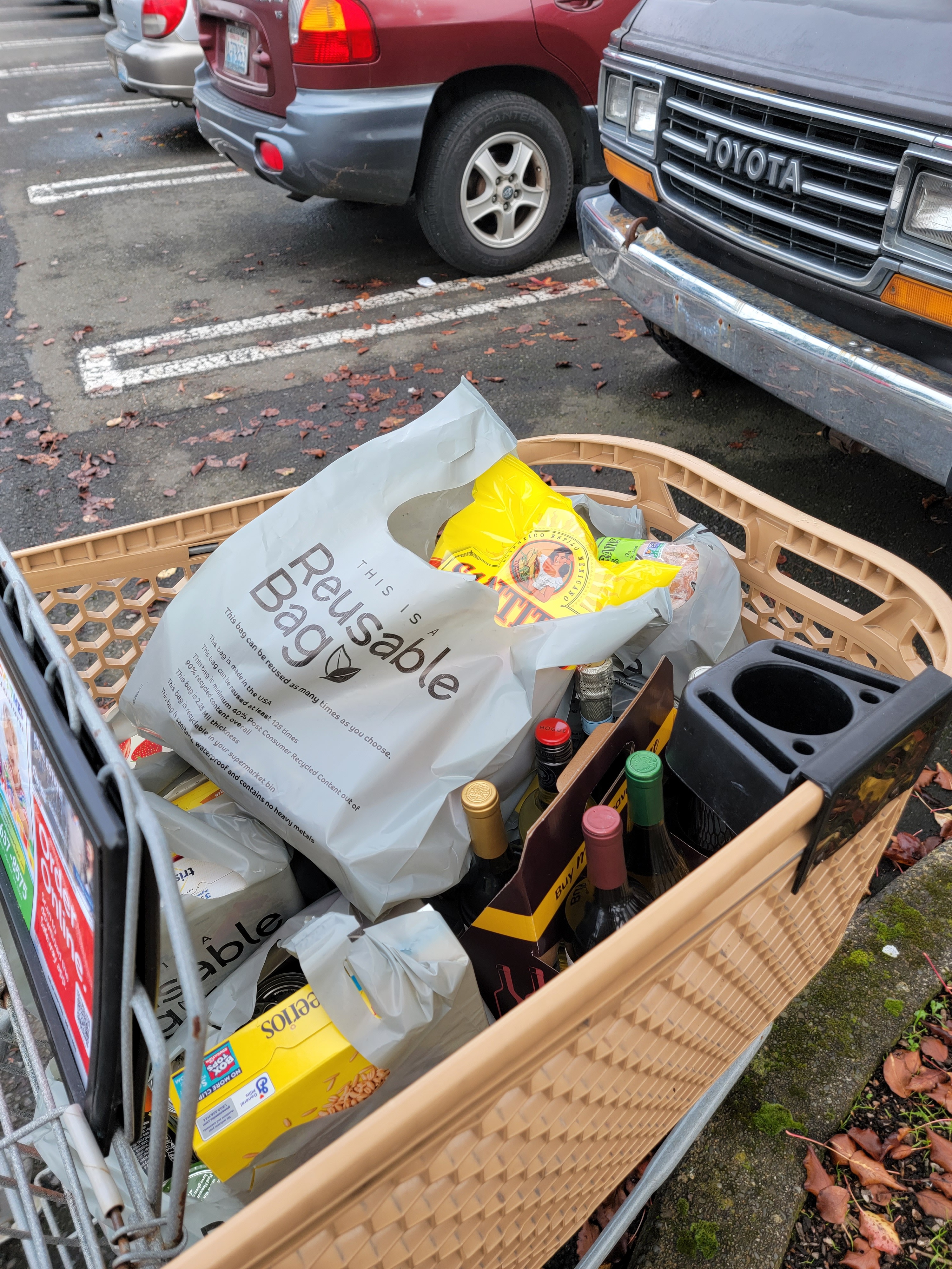 Safeway was bustling. It was the last place to be at 2 PM on the Wednesday before Thanksgiving. However, this visit turned out to lift my spirits, as it suddenly felt like Thanksgiving. Van and I had made a list during our drive up the coast, so we were prepared to "divide and conquer." (I had come to enjoy doing normal things like grocery shopping on the road, as it brought comfortable feelings of normality and home. Grocery shopping = comfort? Who knew... TCB had amazing effect on me.)