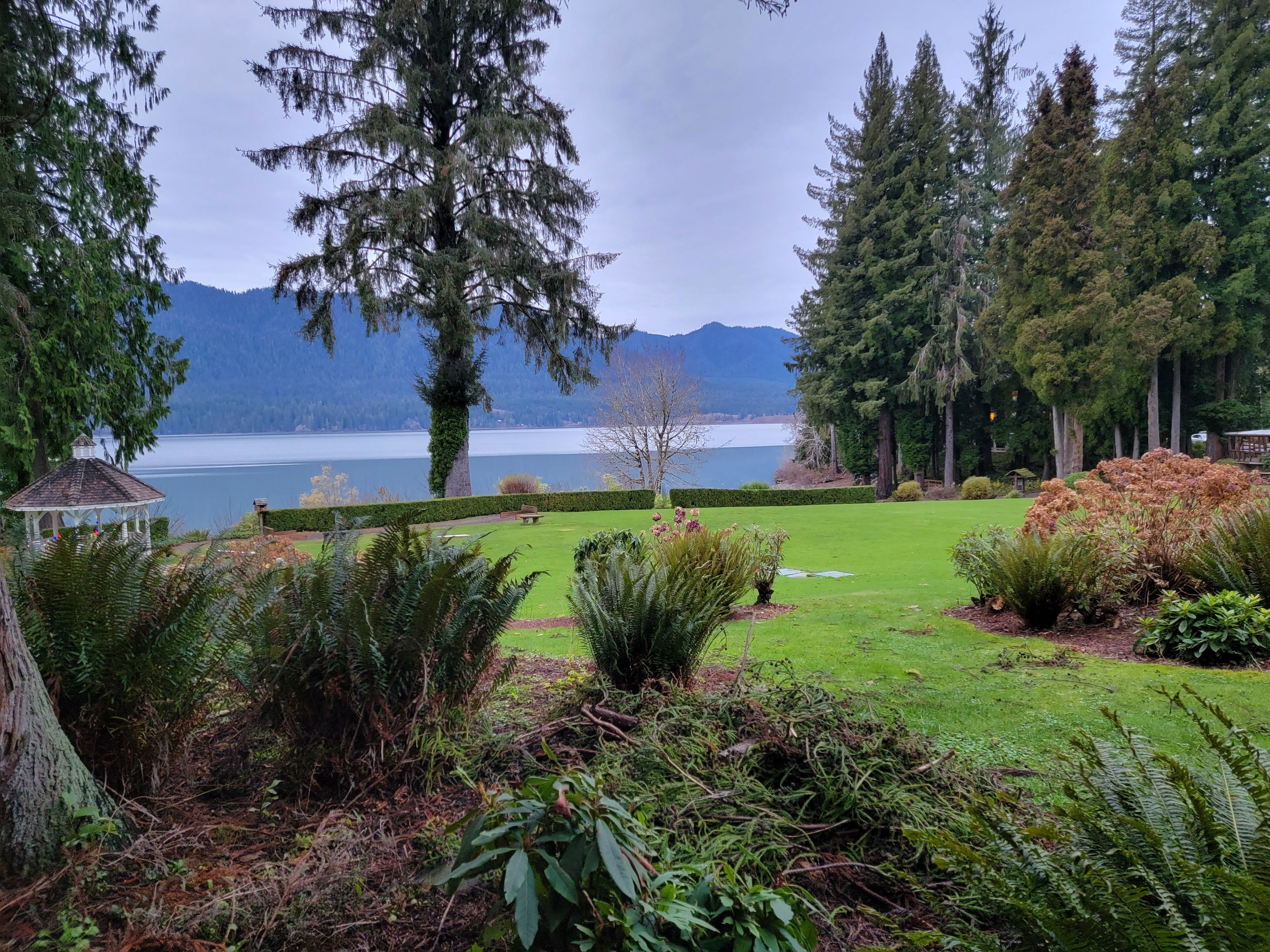 Finishing our chores, we left Aberdeen in beautiful afternoon light to enjoy the coastal sights. We arrived in daylight to Lake Quinault Lodge on the Olympic Peninsula, Washington, and checked into our lakefront room (all rooms were lakefront).