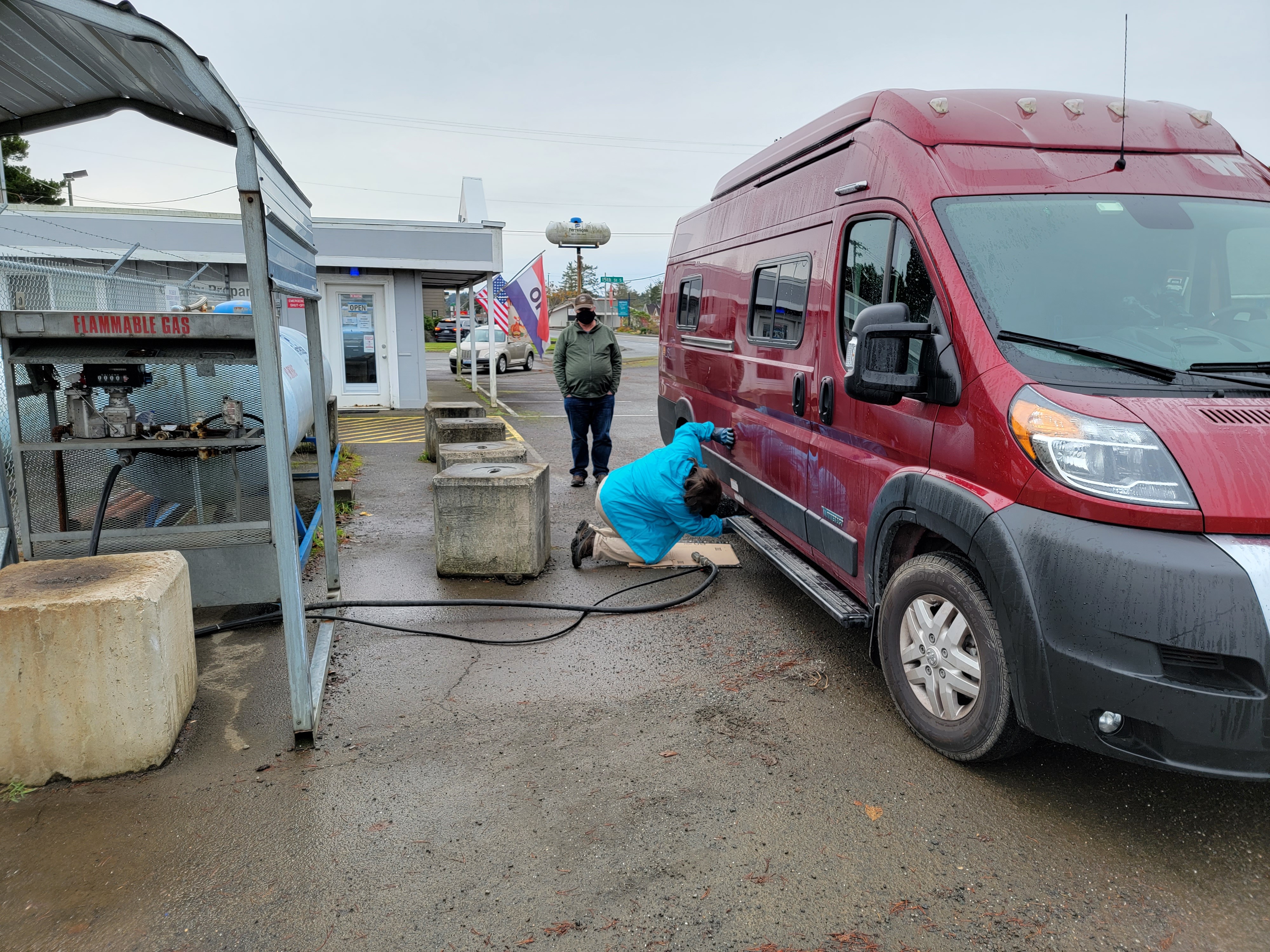 As we departed Long Beach, we needed to check "propane fill" on our to-do list. We would need propane to use TCB's Truma heater for Quinnbo in the Olympic Park's chilly rainforest. I caused a big hiccup in our Thanksgiving plans by not reading the fine print.