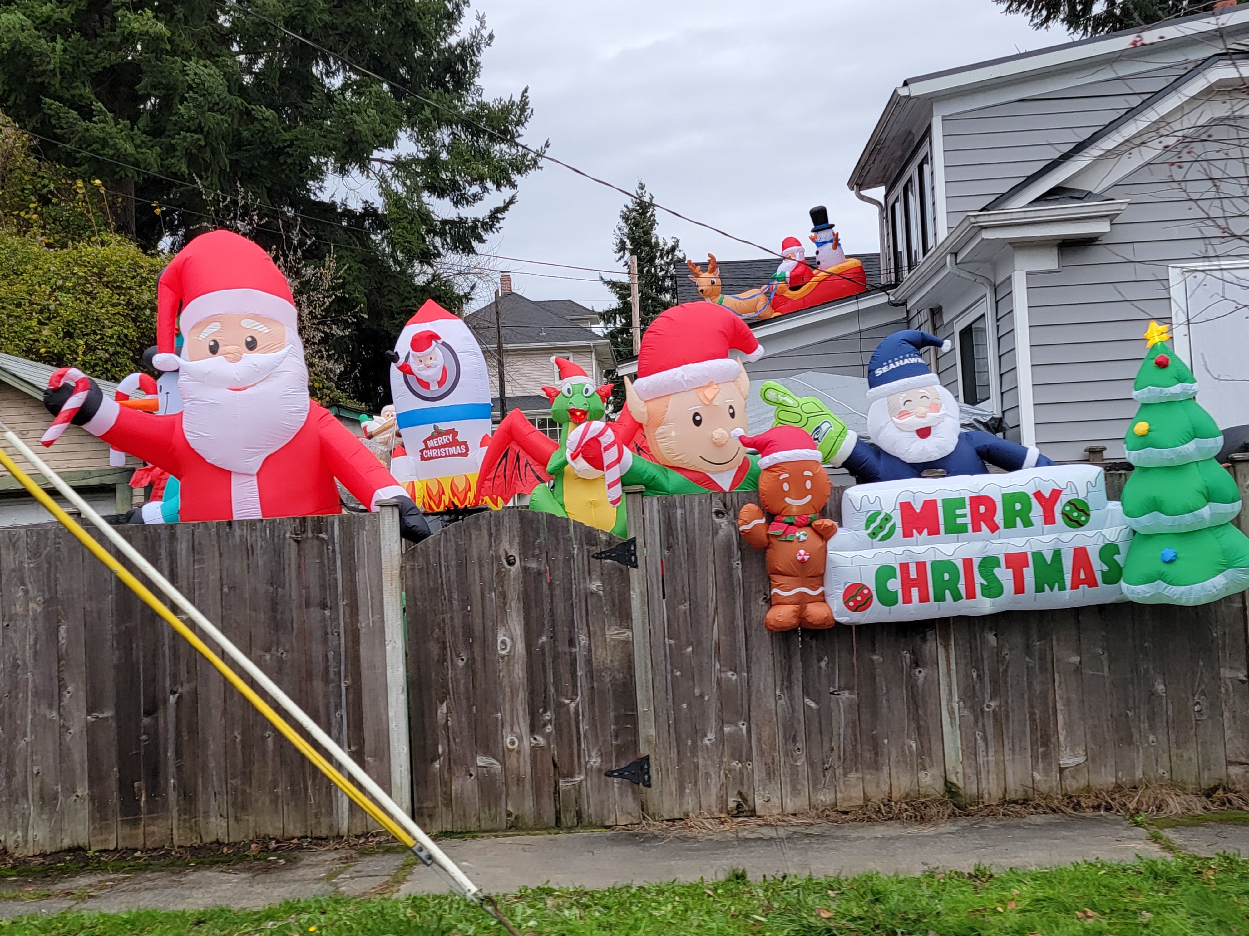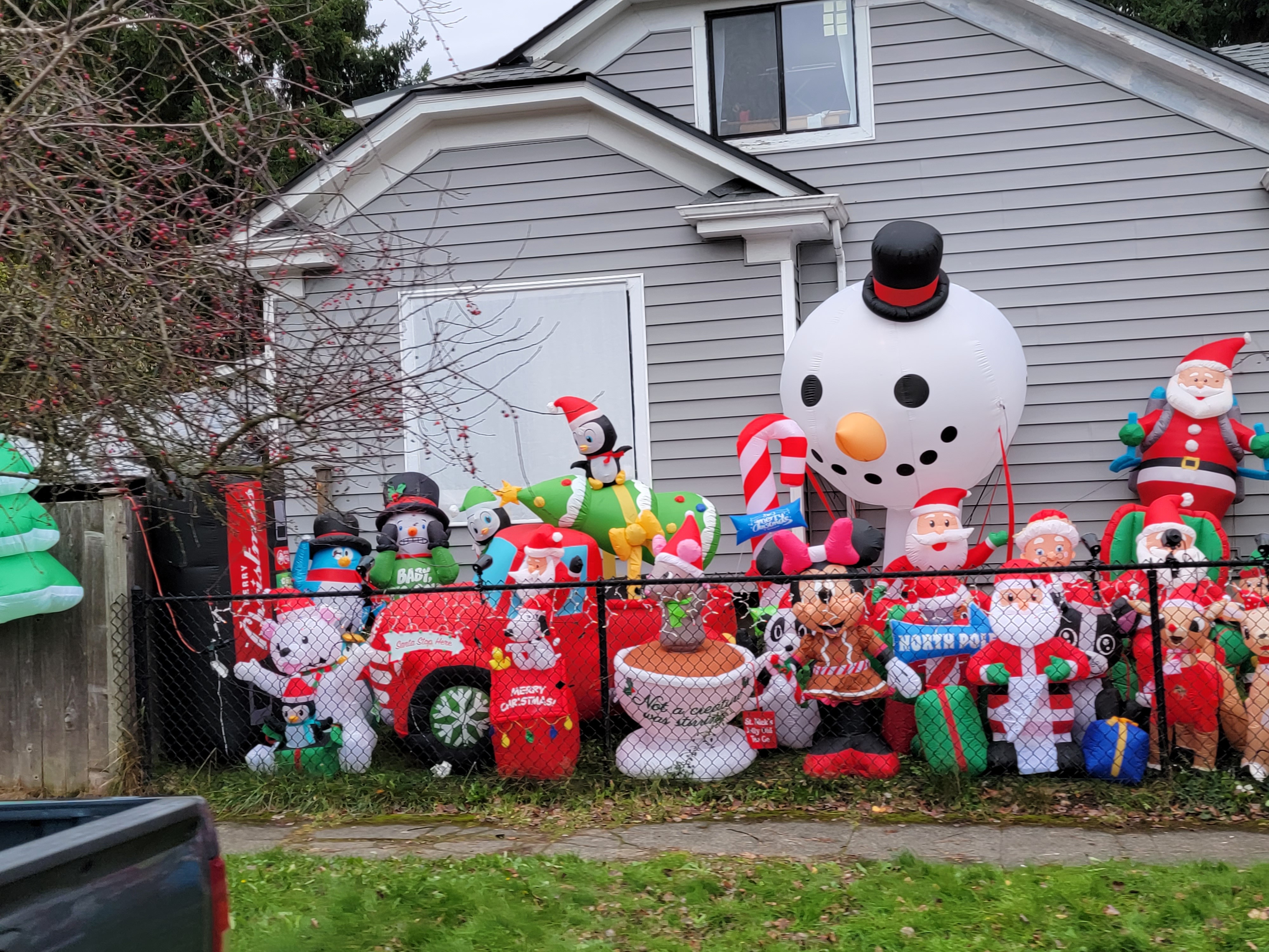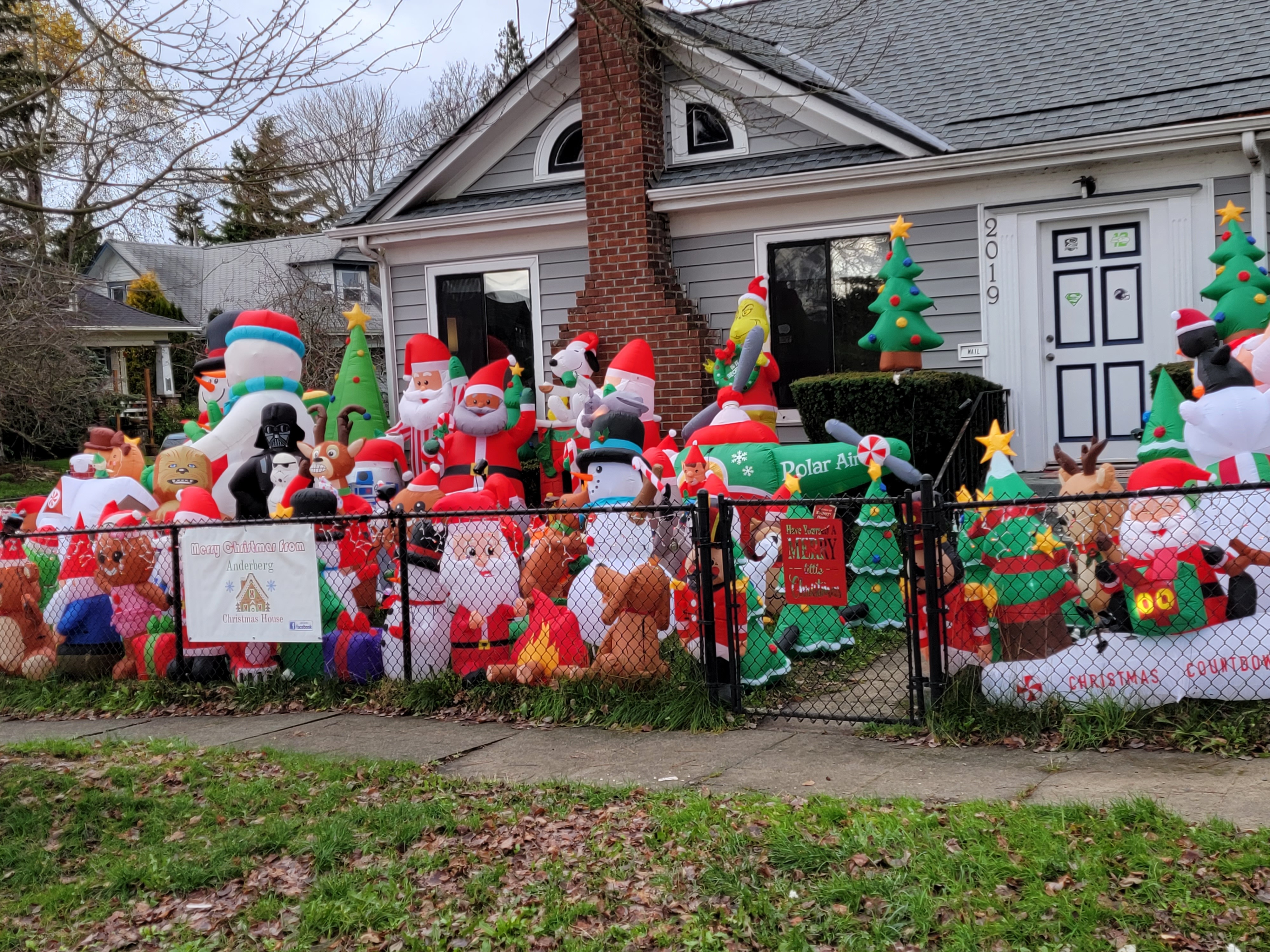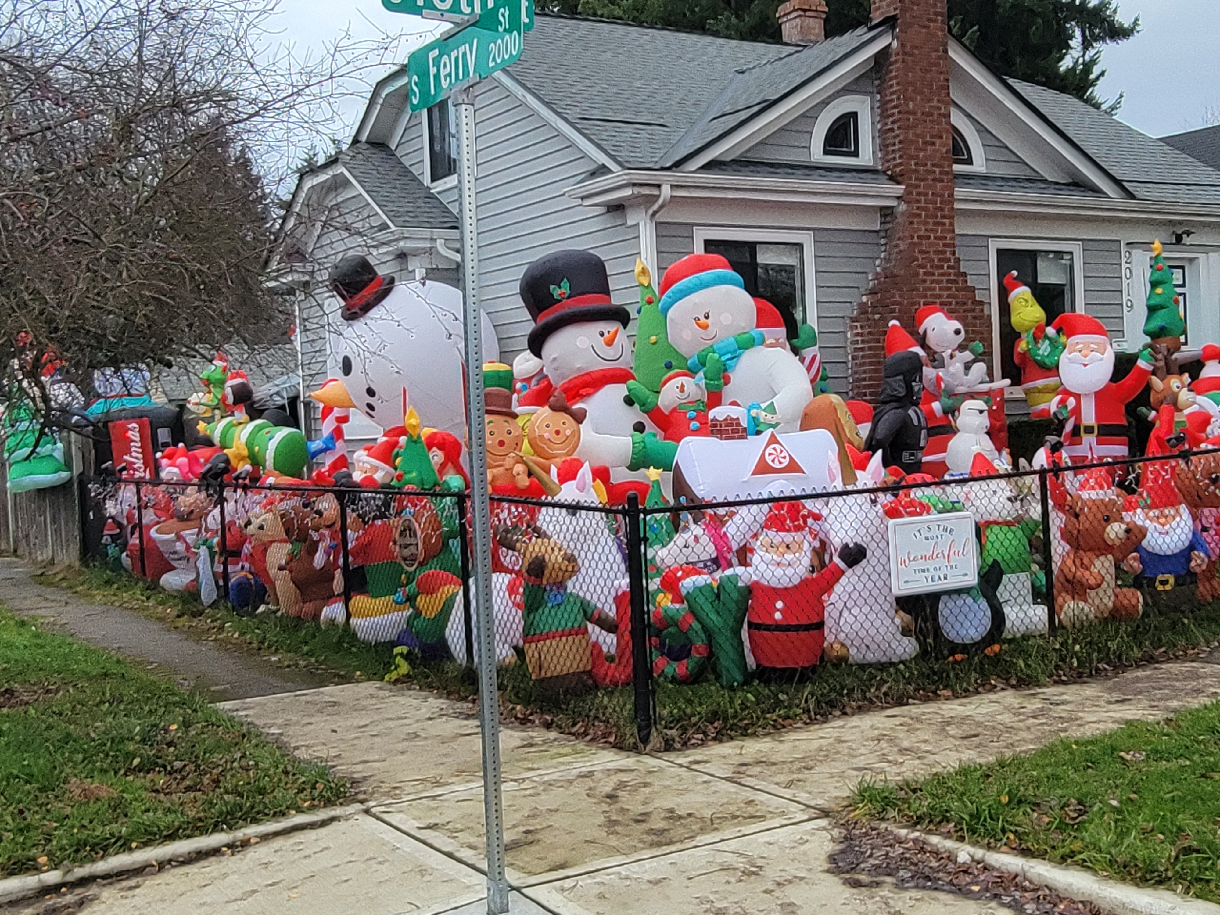 We enjoyed seeing Rachel's cute neighborhood and especially, their neighbor's festive and full holiday display of blowups surrounding the perimeter of the house.