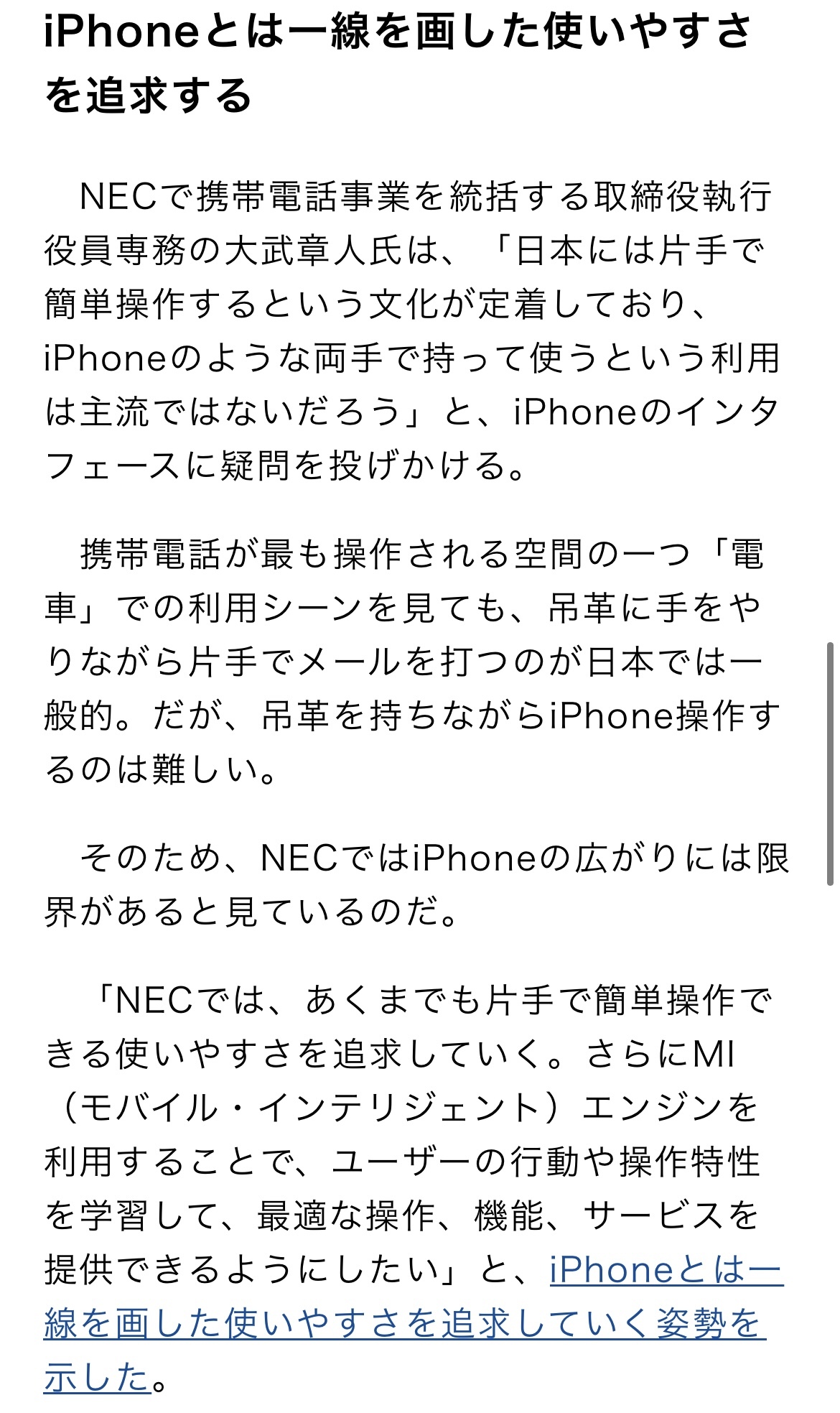 ちなみに、この発言からNECが携帯電話事業から撤退するまでにかかった時間は、たった5年です。