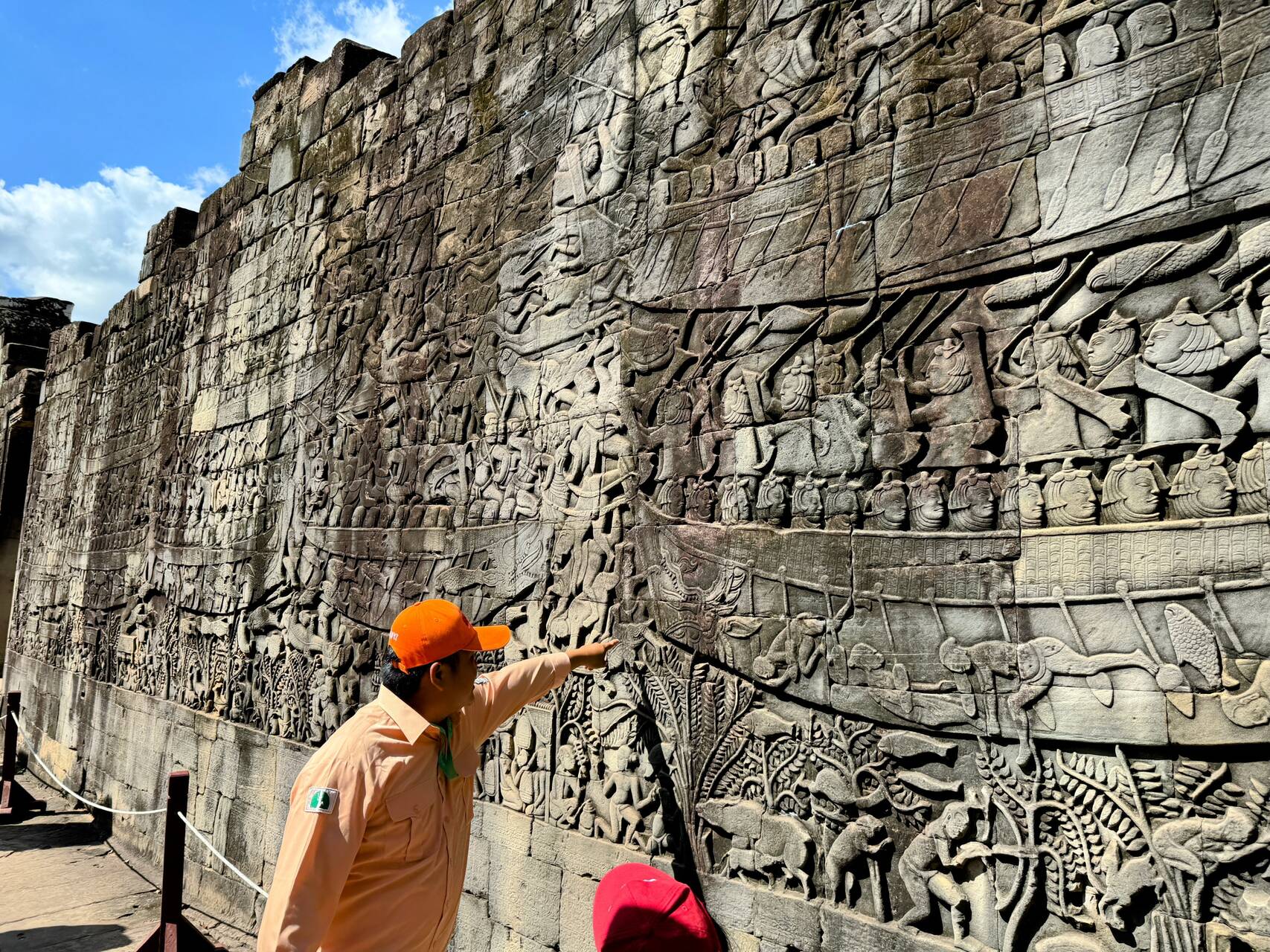 # ご存知アンコールワット。壁画の意味もわかりやすく説明してくれました。やはりガイドさんは最高ですね。