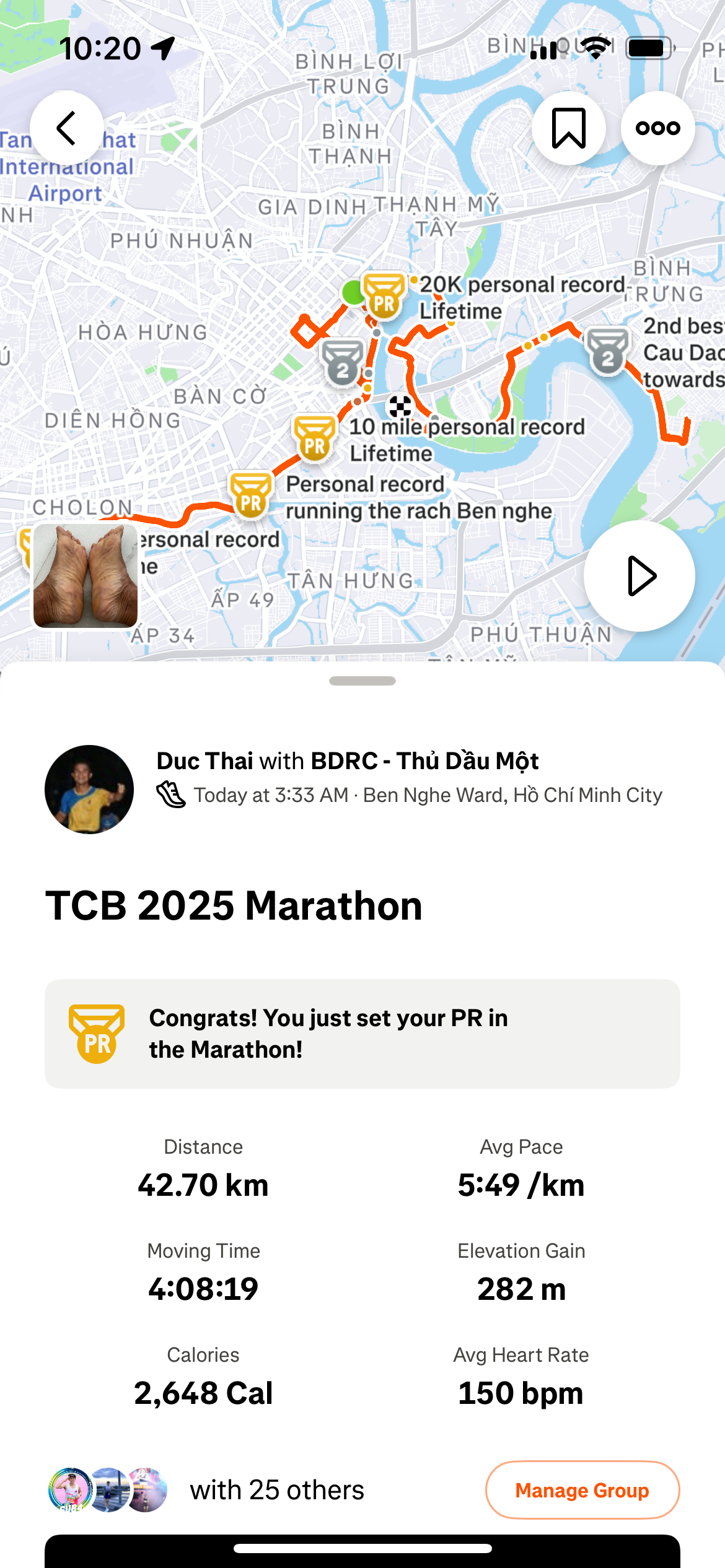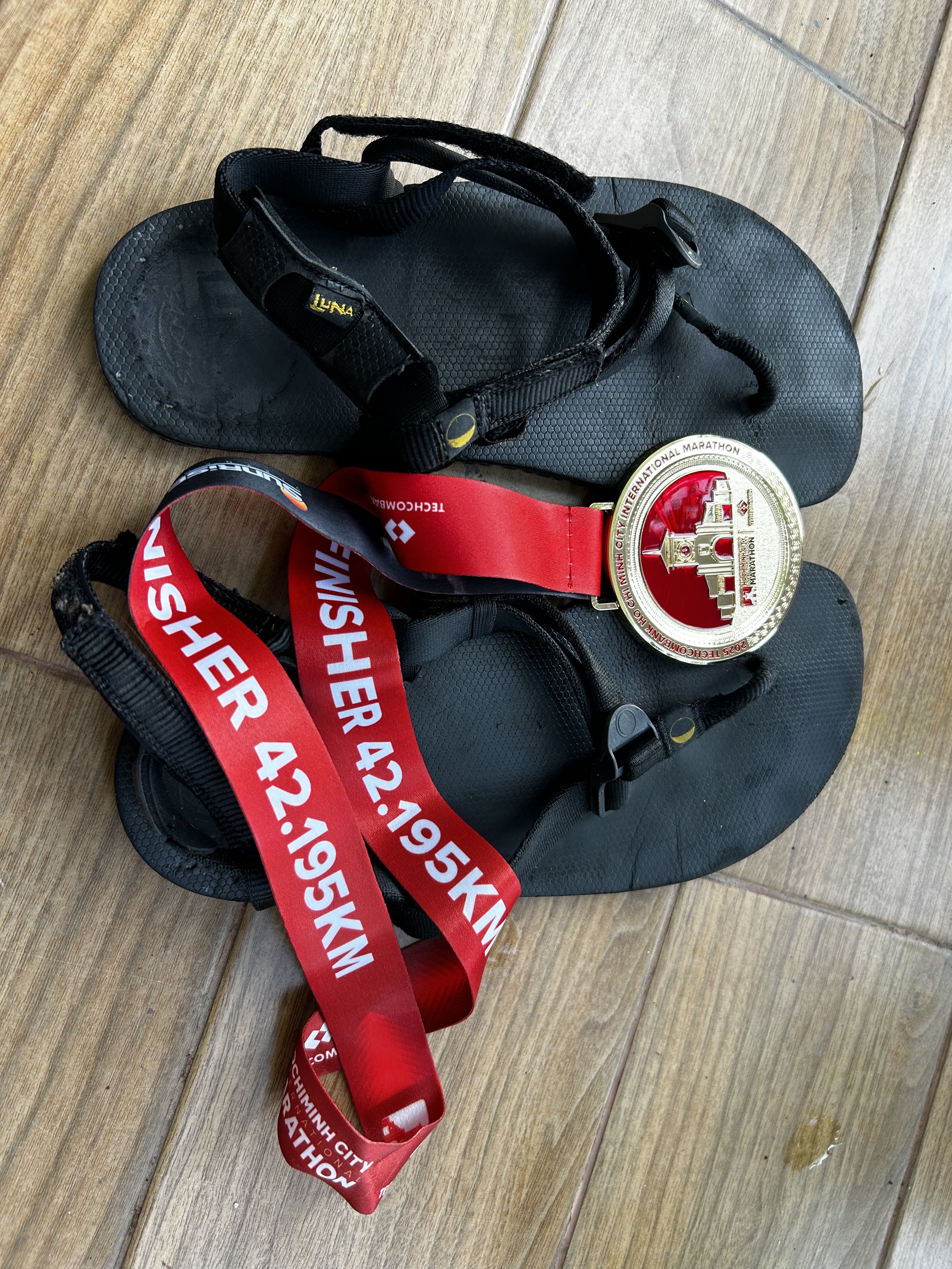 Techcombank Marathon day finished 4:13 with Luna Sandals, 4 electrolytes capsules