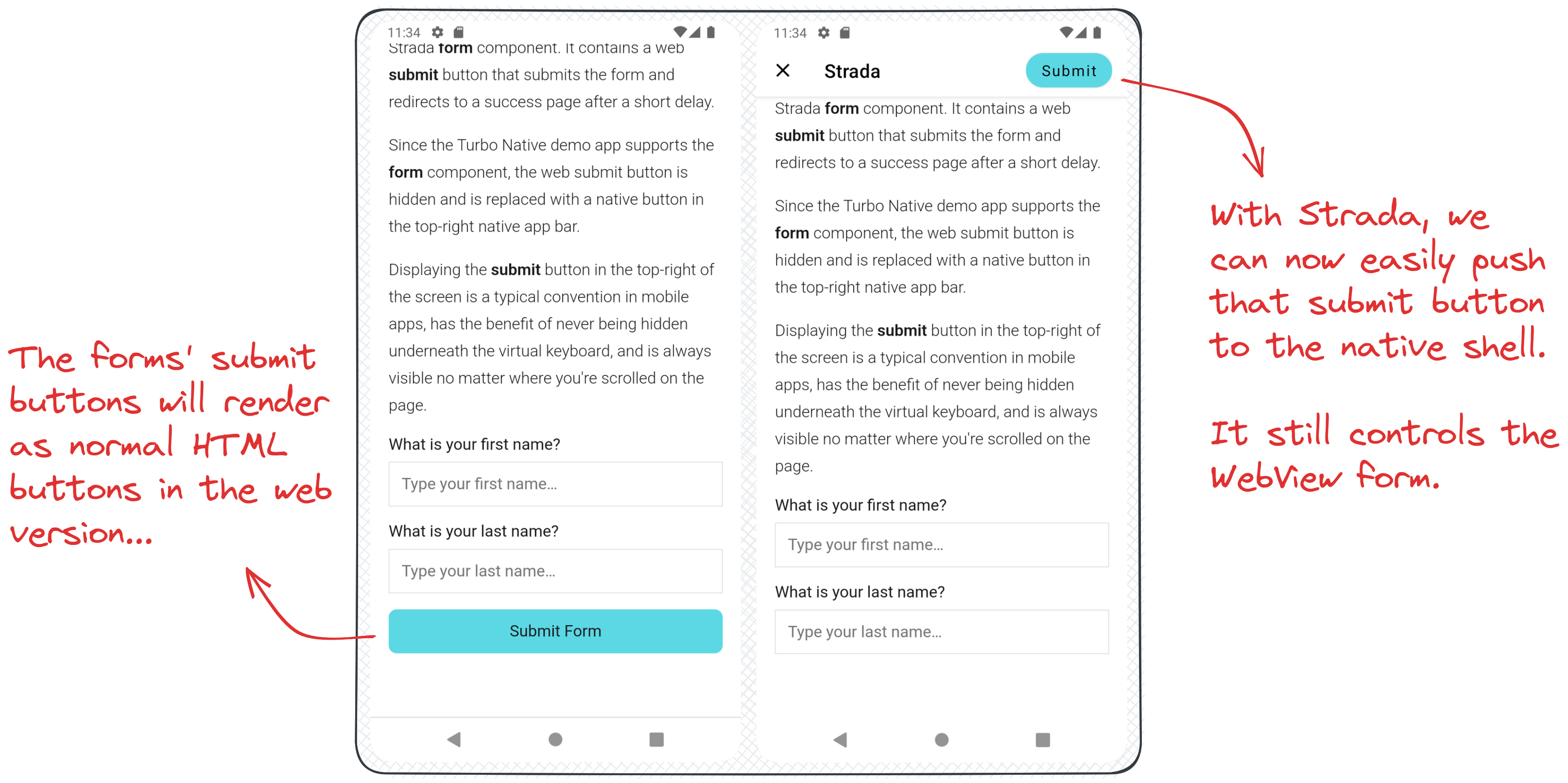 Strada now makes it easy to enhance the behavior of our UI components based on HTML attributes and sprinkles of JavaScript. We can now make a generic native component that will connect to our web elements to enhance their behavior on mobile clients.