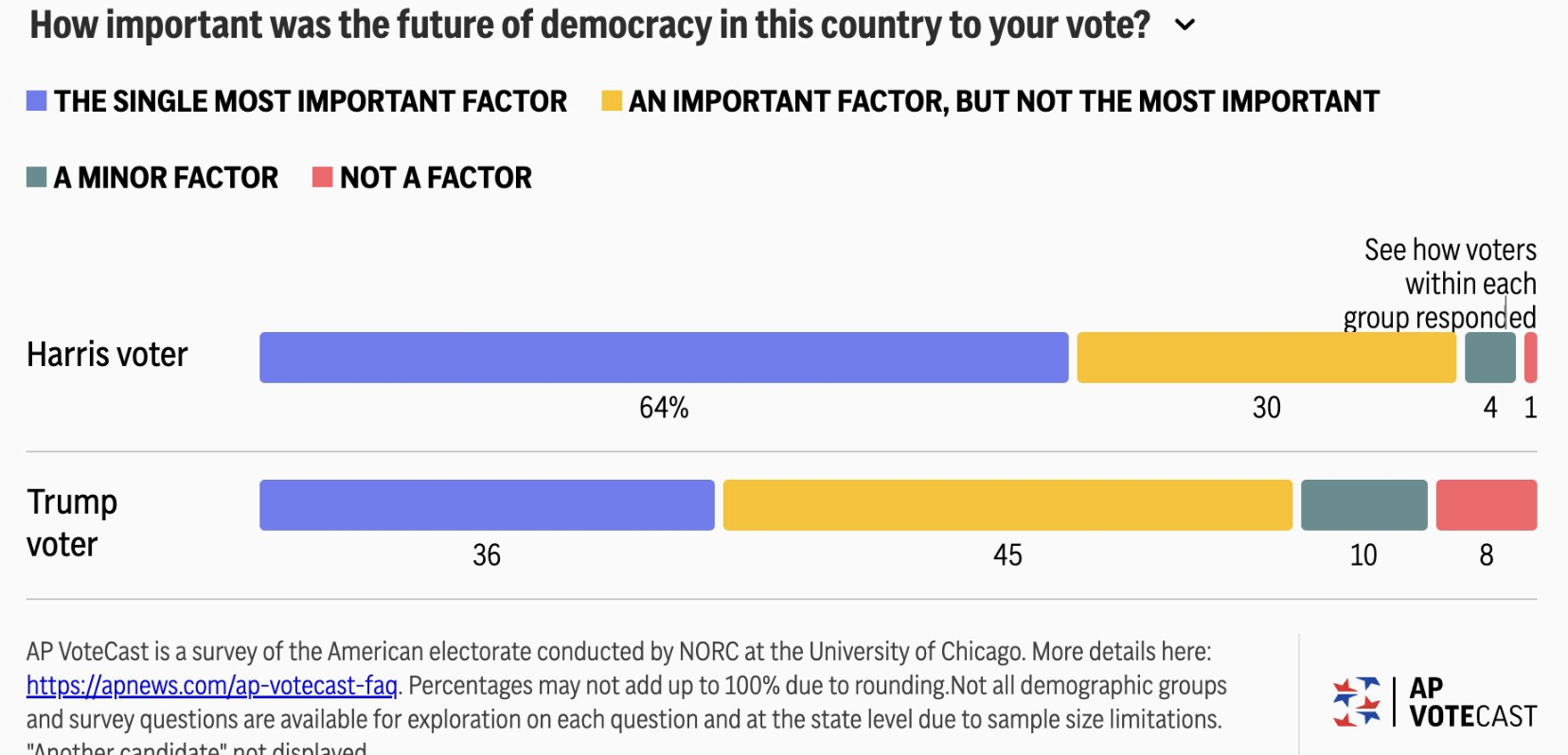 And it's hard to know for sure: voters may lie if they say they vote "because" of policy issues. Just as they may not be telling the truth if they are say vote to preserve democracy.